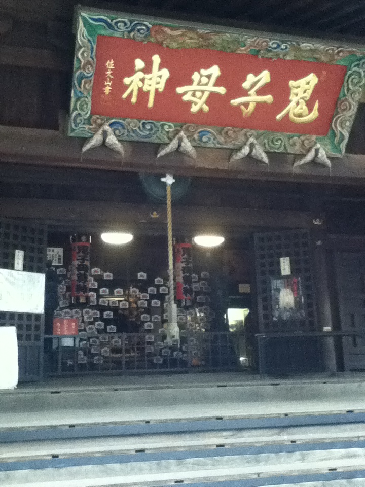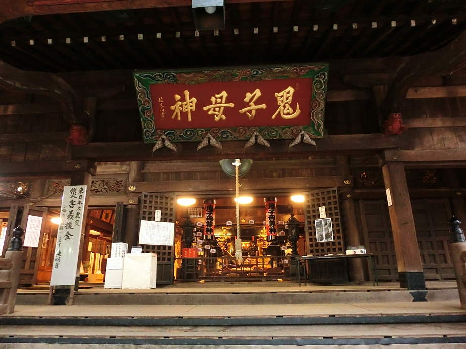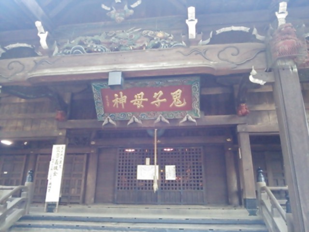 本堂に掲げられた「鬼子母神」の鬼の字に点がないのは、幼児を抱いた菩薩のような鬼子母神の姿に尊敬の念をこめて、鬼の字から角を取ったためと言われています。