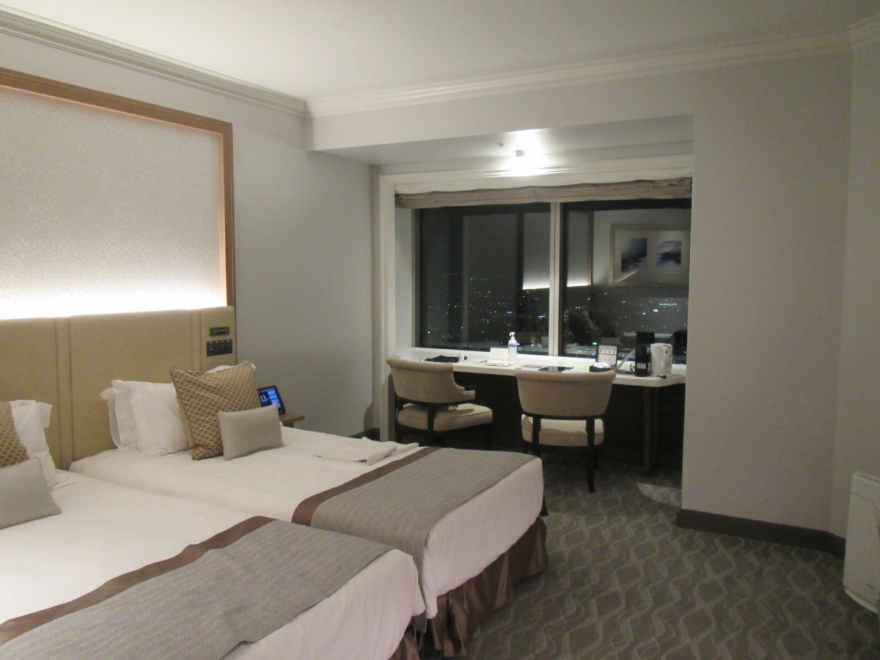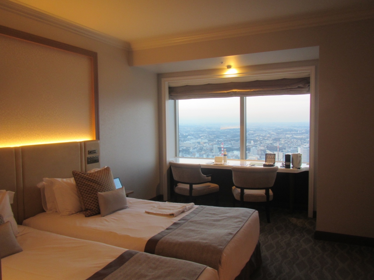 ホテル内でも階数によって4クラスの客室のランク付けがあって、52-59階のレギュラー、60-64階のアトリエ、65-66階のザ・クラブ、67階のザ・トップと分かれていますが、高度感とお値段のバランスでアトリエを利用しました。