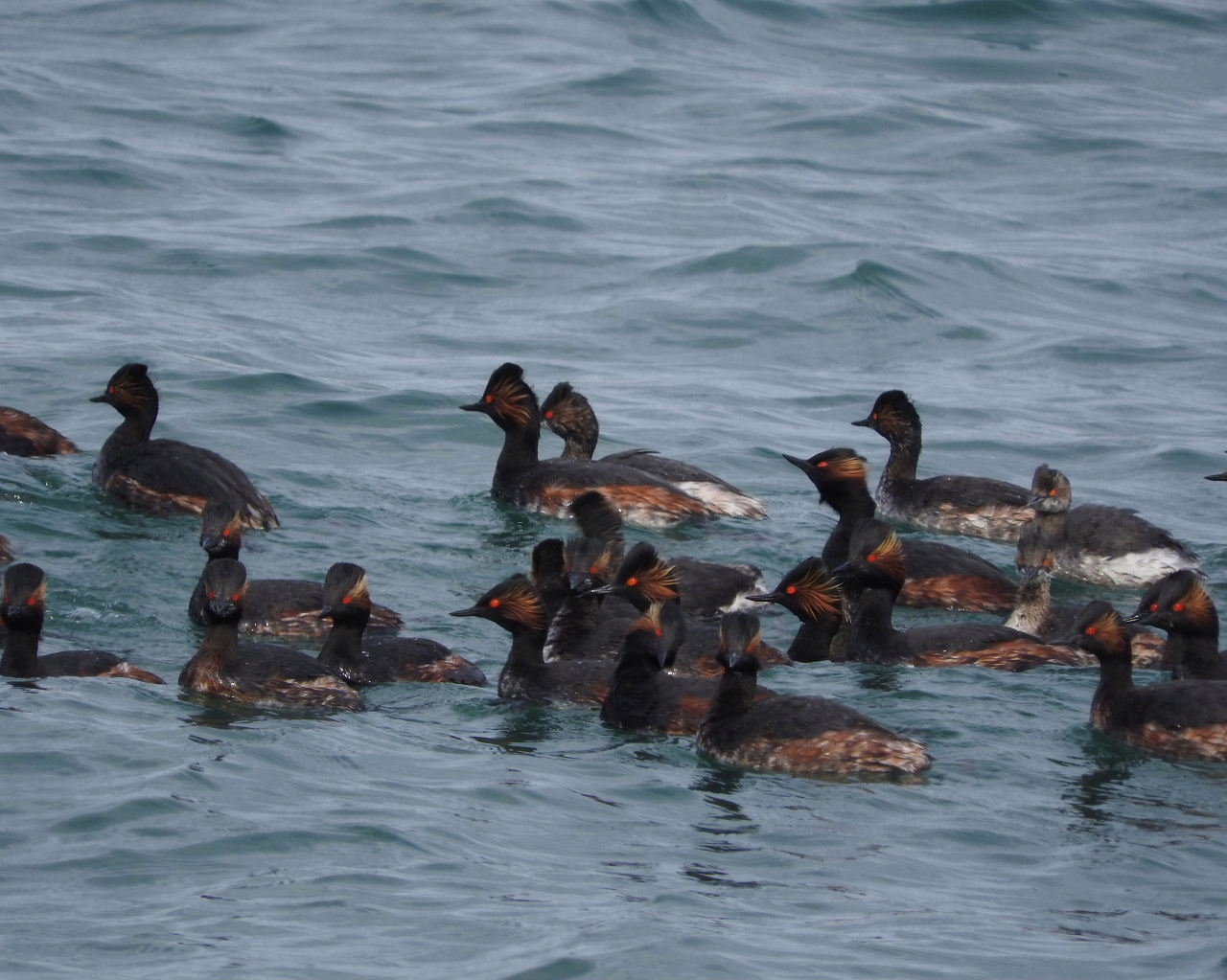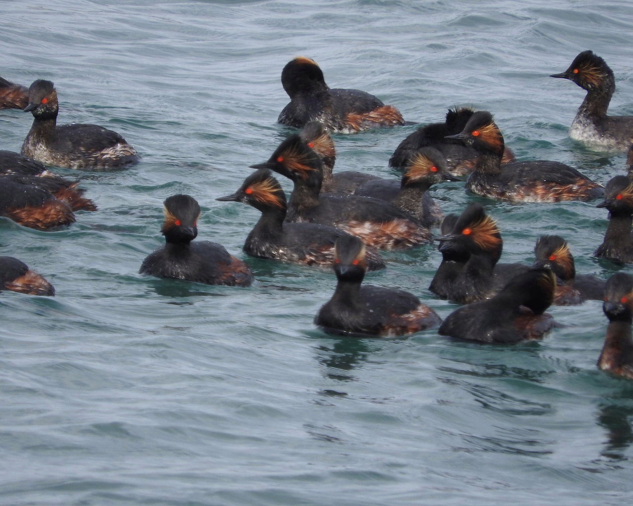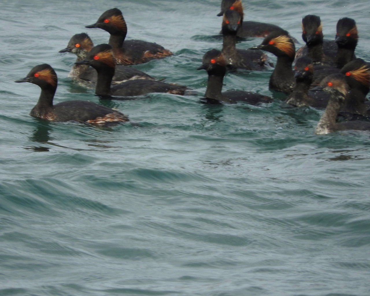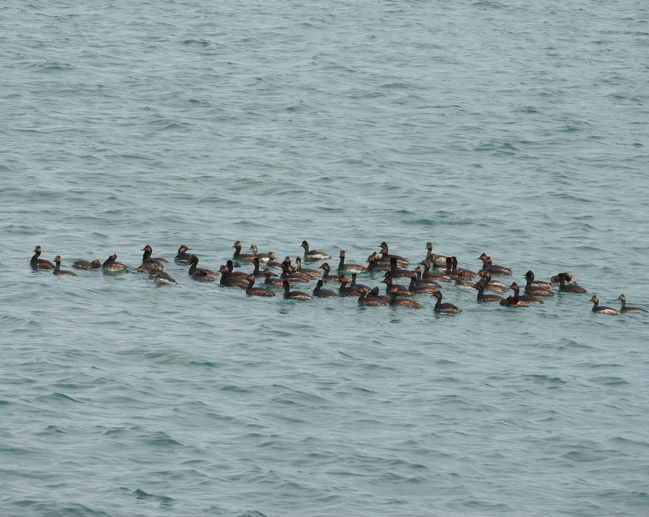 銚子漁港でバードウォッチングを楽しんでいた時、夏羽に換羽したハジロカイツブリの群を見ました。