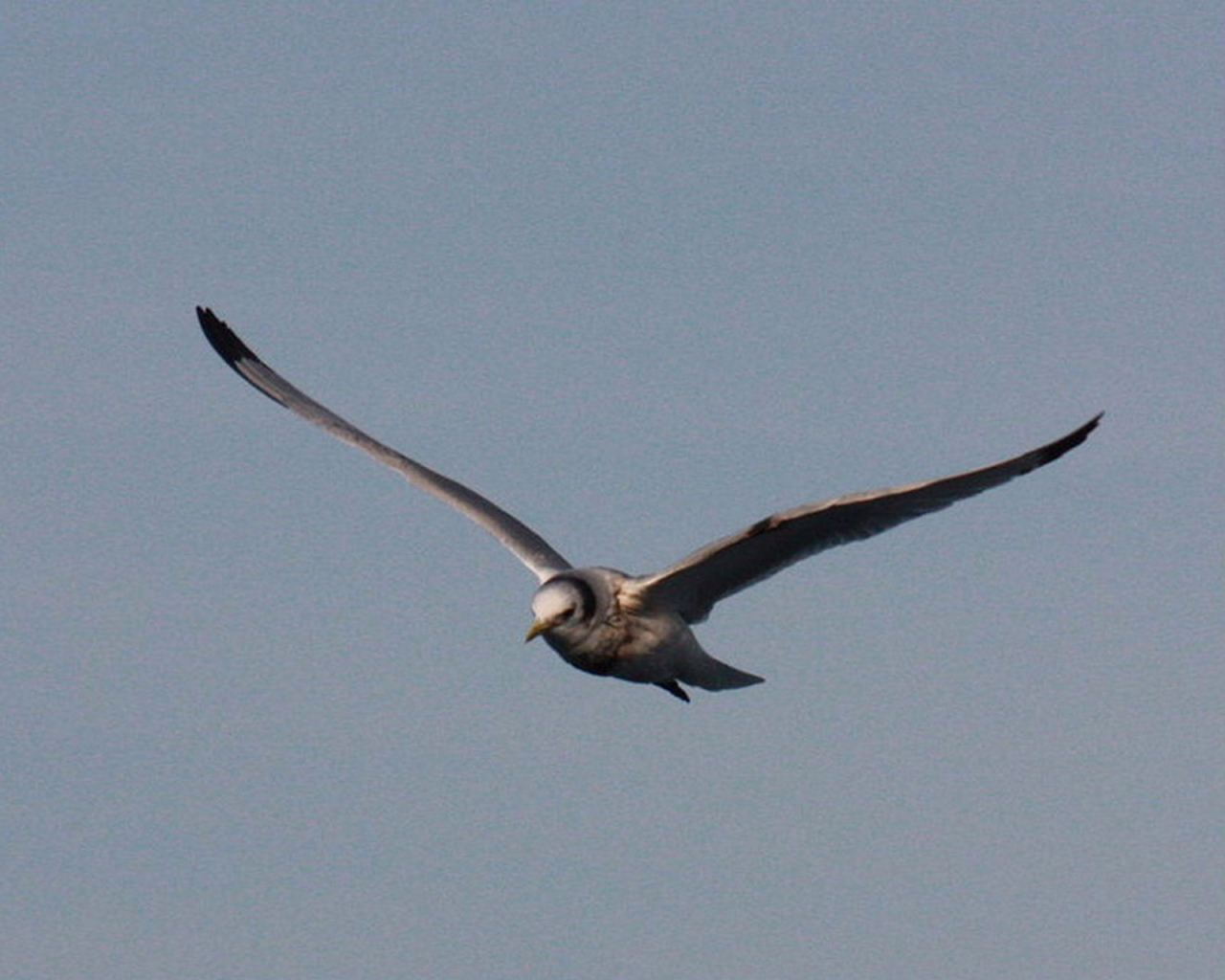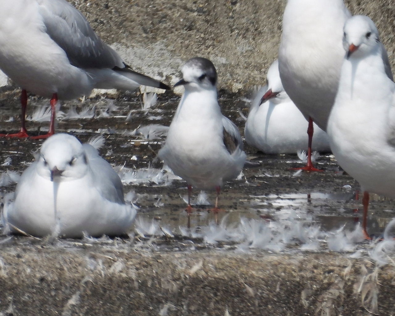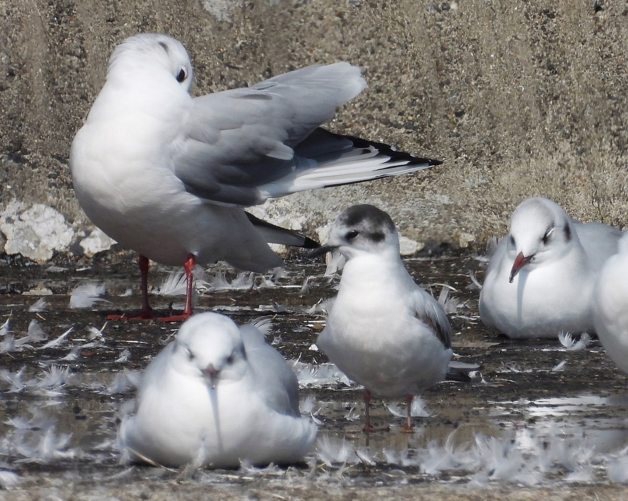 慌てて岸壁に戻って双眼鏡で覗くと、ユリカモメの群れに交じって飛ぶ、お目当ての珍鳥チャガシラカモメがはっきりと見られました。