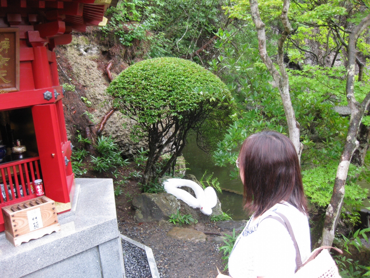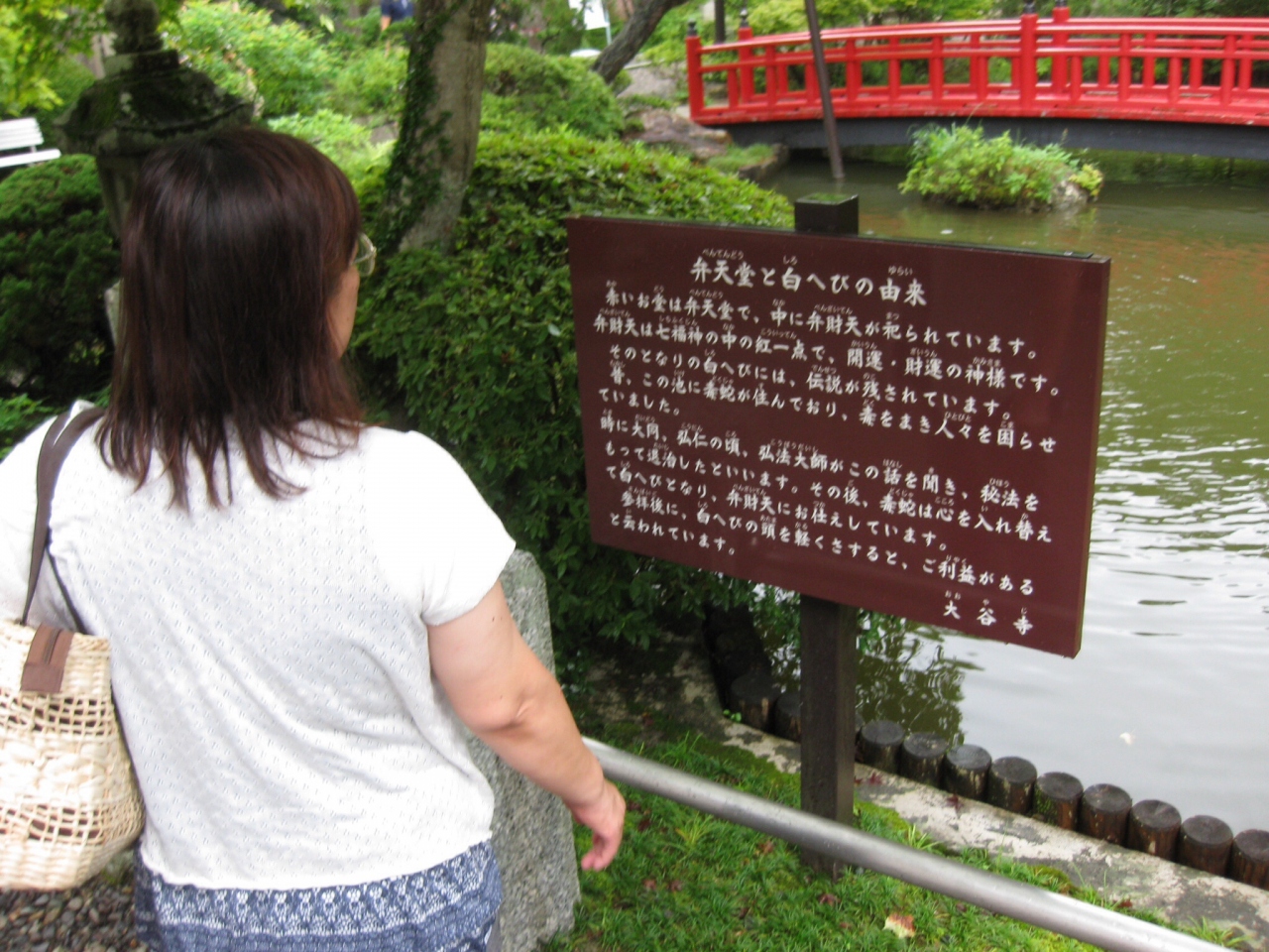 そして、境内にある池の中央には弁財天が祭られており、毒蛇が心を入れ替え白蛇となり弁財天に仕えているという事です。白蛇の頭をなでるとご利益があるというので、なでてきました。