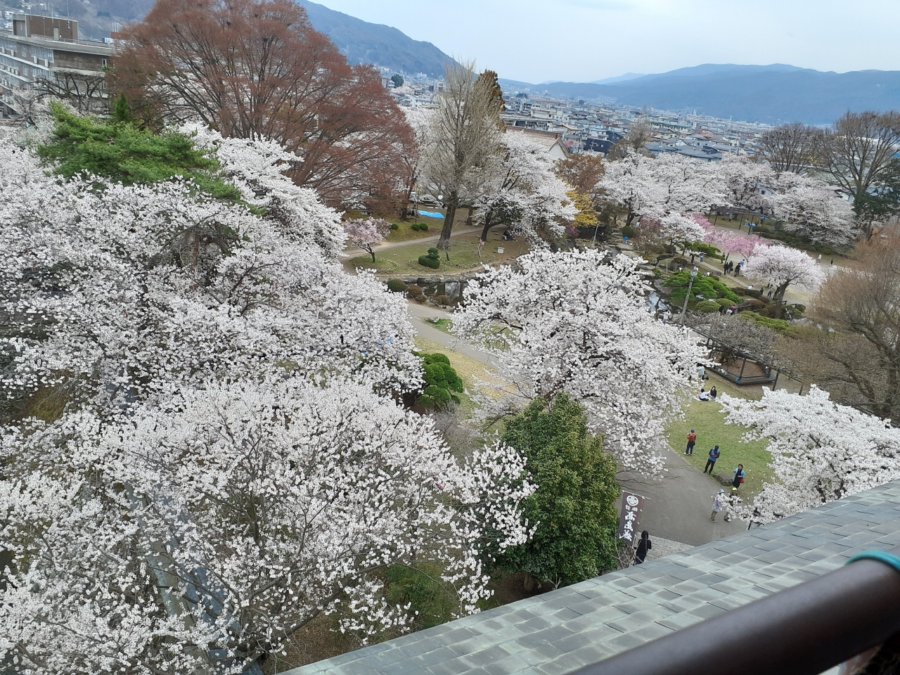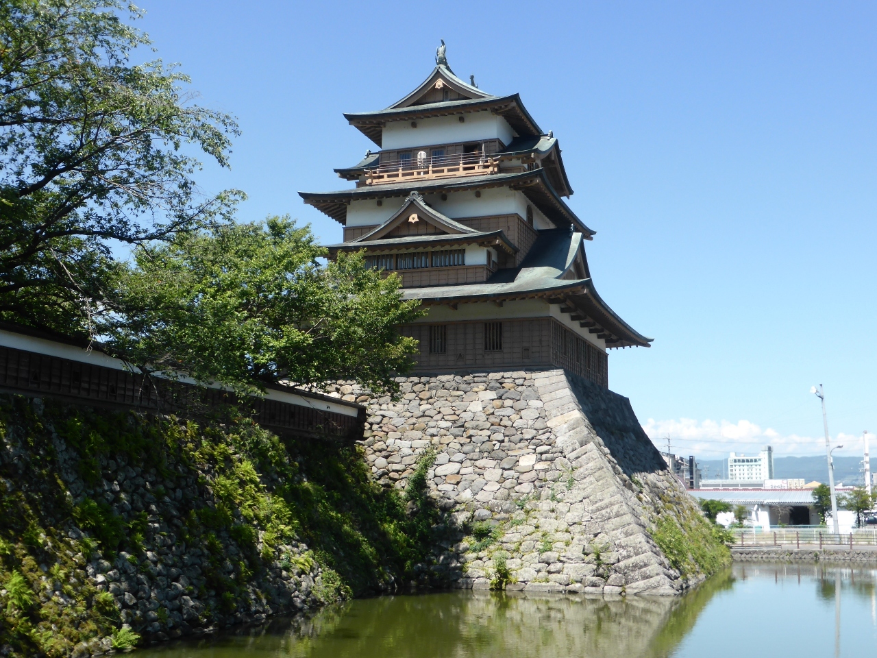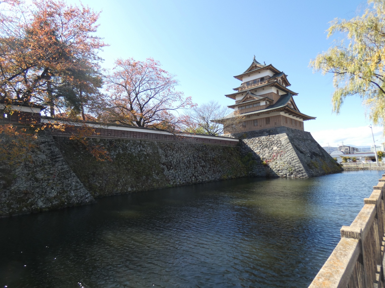 約400年前に築城された高島城。築城当時、諏訪湖の水が城際まで迫り、諏訪湖上に浮いているように見えることから、別名「諏訪の浮城」と呼ばれていました。現在の天守閣は昭和45年に復興されたものです。 本丸跡は公園となっており、春には桜、夏には藤、秋には紅葉が楽しめます。