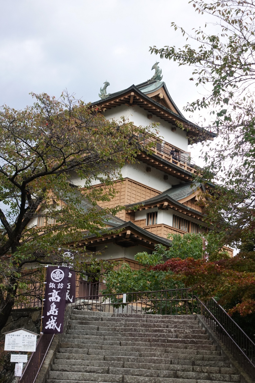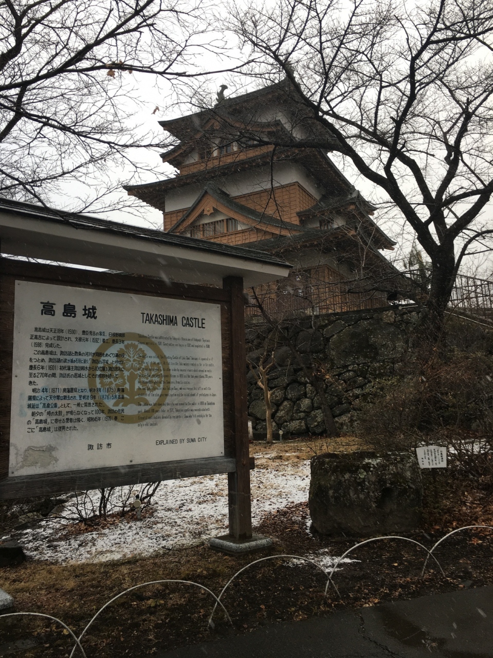 諏訪湖ウロウロしていると、茶色い綺麗な城が見つかる。。