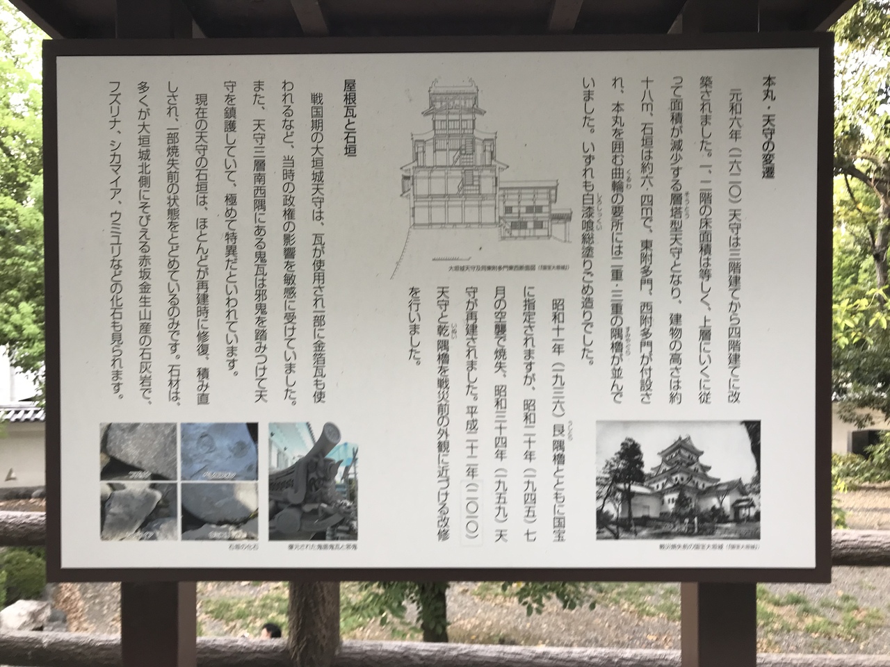 昭和20年(1945年)の戦災で焼失した大垣城は1959年に再建(復興)し、天守内部は資料展示がされていました。