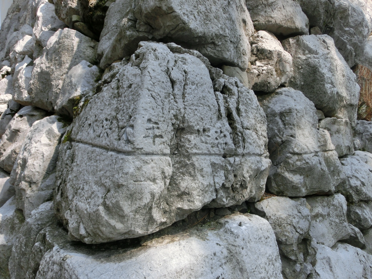 天守石垣の北西角に、1896年の大洪水時の水位が刻まれています。