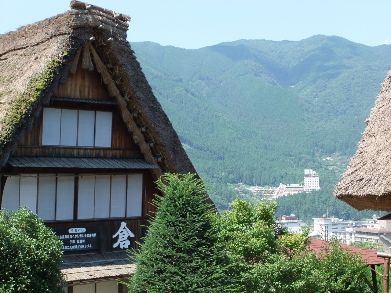 下呂温泉合掌村は、下呂の温泉街から、山の方に登っていきます。歩いて、15分くらいですが、けっこう坂が急なので、お年寄りには... 続きを読むきついでしょう。近くのダムで水没する合掌造りの民家を移築したとか、いろんな経緯があって、ここに集められたようです。合掌造りの家は大小、10棟くらいはありました。ここで一番の目玉は、影絵芝居をやっている「しらさぎ座」。情報を入れていかなかったので、時間が合わず、見れなかったのは失敗でした。一日、二回の公演ですので、是非確認して行かれるといいでしょう。ただ、民家の縁側で寝っころがっているだけでも、水車の音とか聞こえたりして、十分、楽しいです。