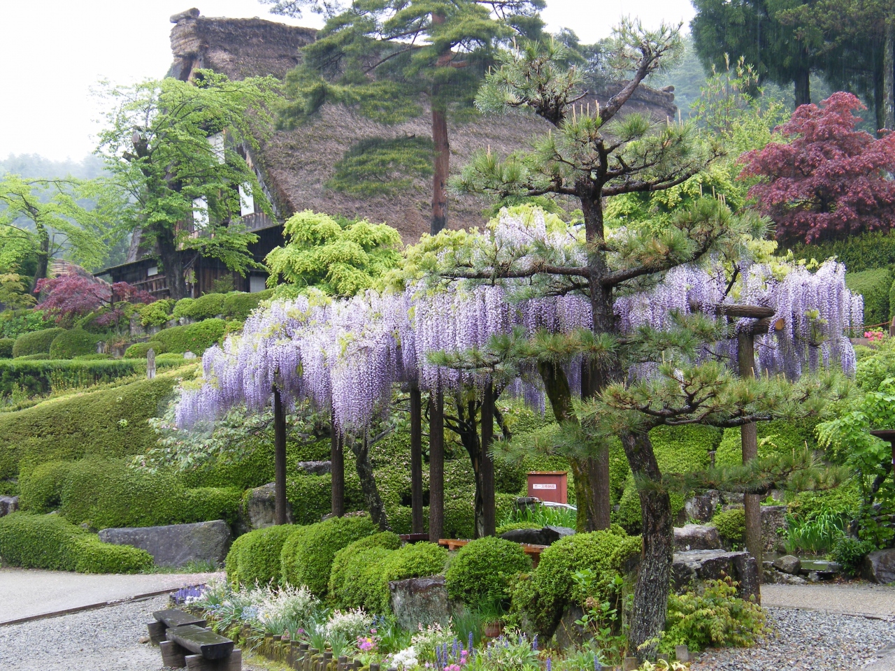 下呂温泉合掌村は、国指定重要有形民俗文化財「旧大戸家住宅」をはじめ、白川郷などから移築した10棟の合掌造りからなる博物館です。村内では、合掌造りの内部を見学できるほか、陶芸や和紙の絵漉きができる体験工房、昔懐かしい里山を再現した「歳時記の森」などがあります。