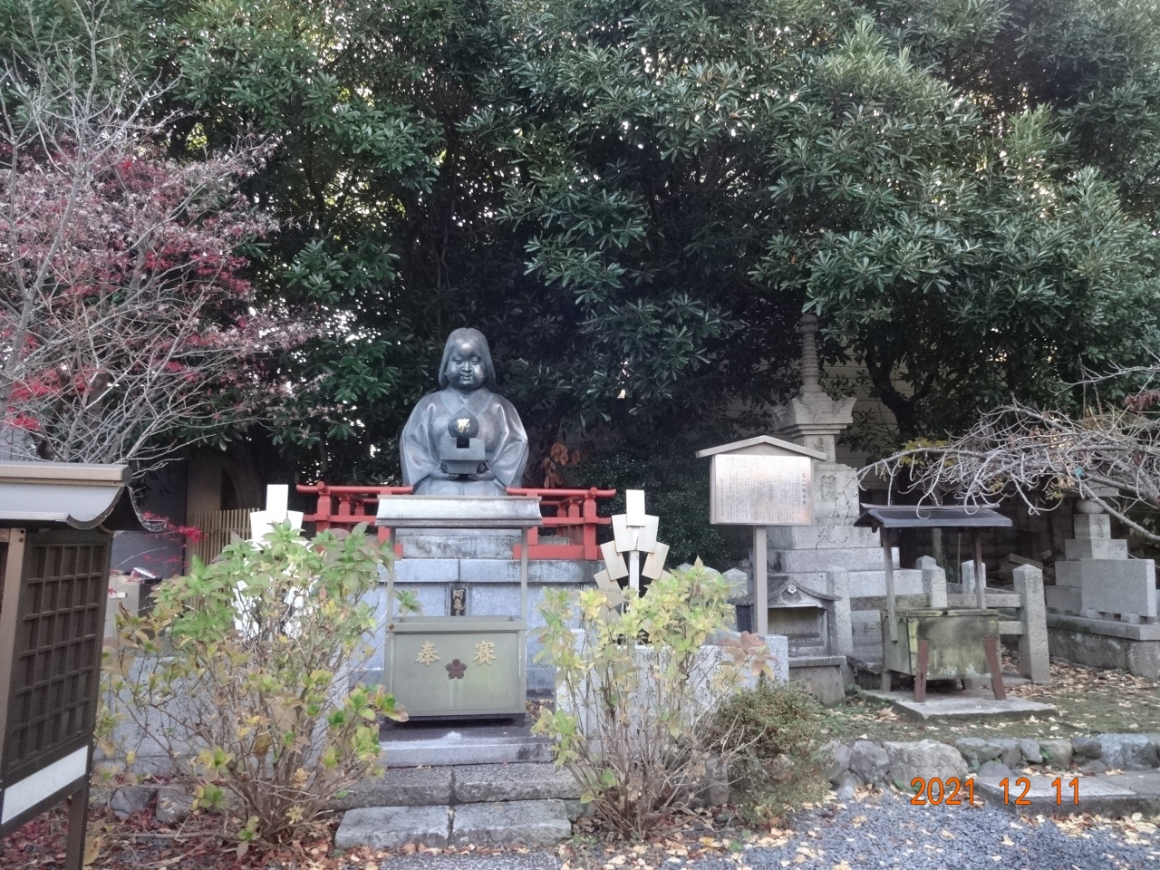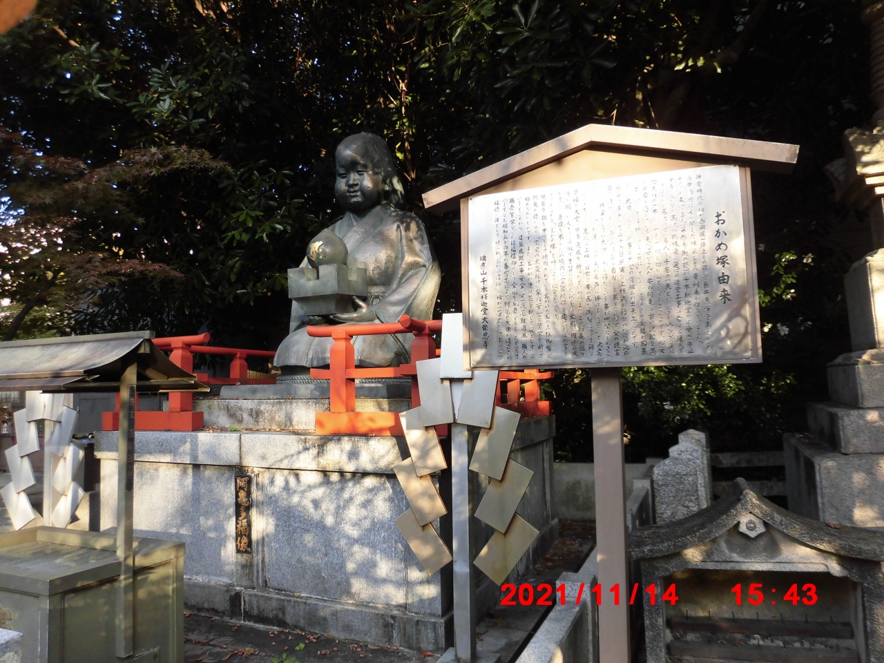 今出川通の上七軒バス停から数分のところに建つ真言宗大報恩寺です。1227年に開創されました。住宅街にあり山門から石畳の参道... 続きを読むを歩いていくとしだれ桜と千本釈迦堂があります。この本堂の前におかめ塚があります。本堂造営の際に、過失で柱を短く切ってしまい悩んでいた棟梁に、妻のおかめが斗栱を使うことを話した結果事なきを得たものの、上棟式の前におかめは自刃し、夫の名声を守ったことから、おかめの徳を偲ぶために建立されました。堂内に全国から奉納されたおかめ像や面などが多数あり、おかめ坐像もありました。本堂の柱に応仁の乱の時につけられた刀と槍の傷跡があり、遠い過去を生々しく感じました。 閉じる