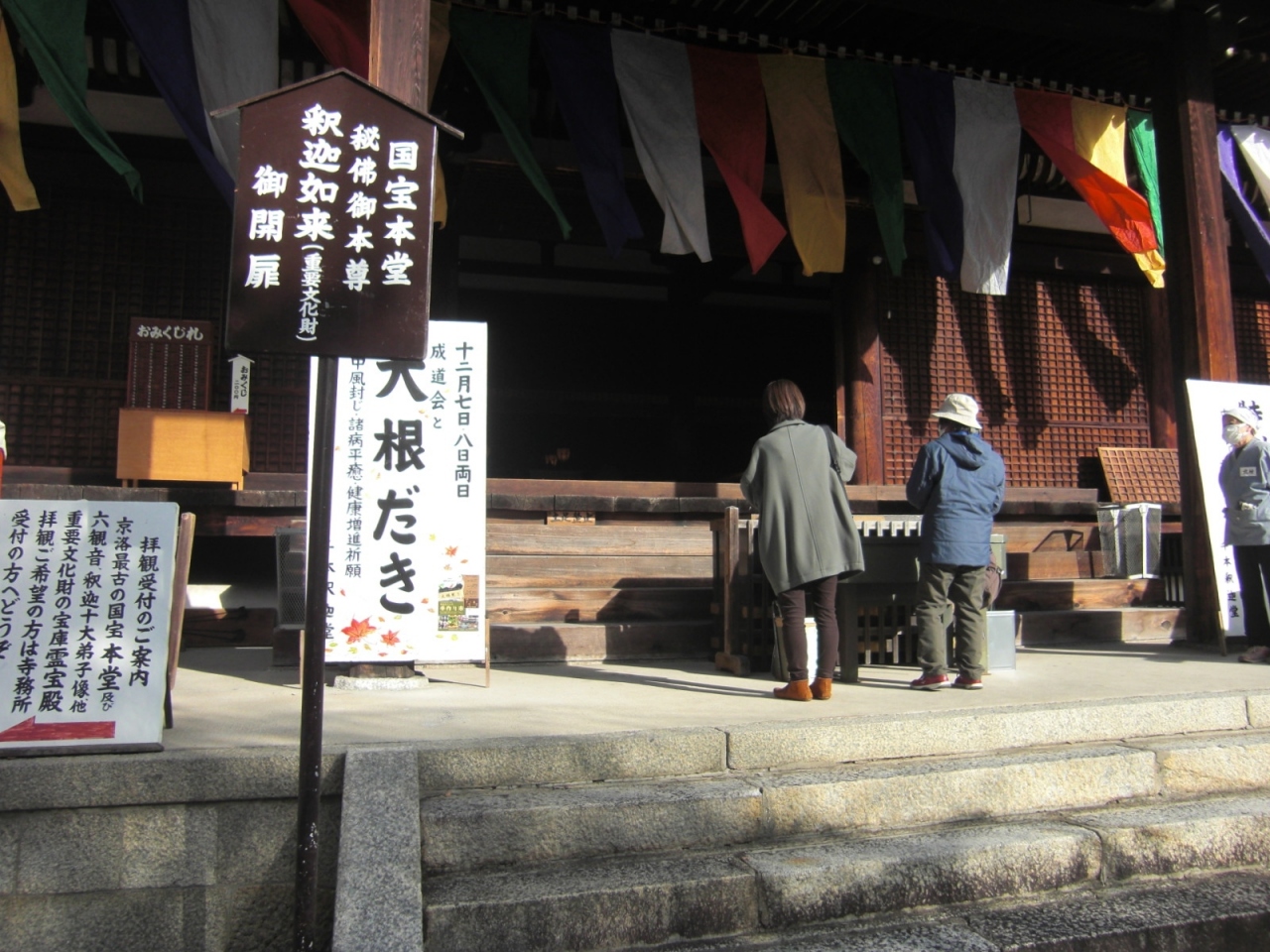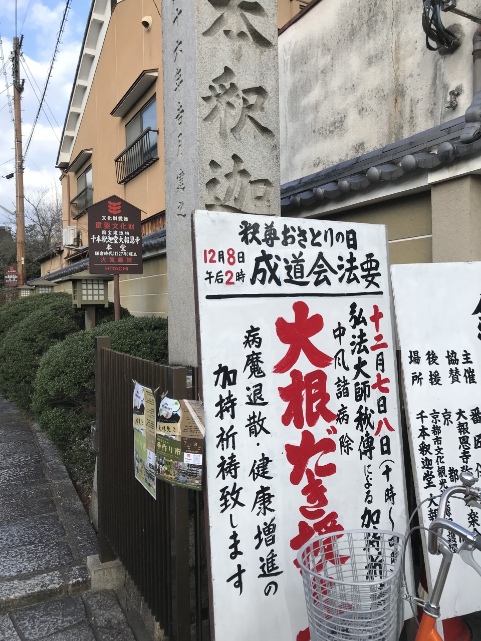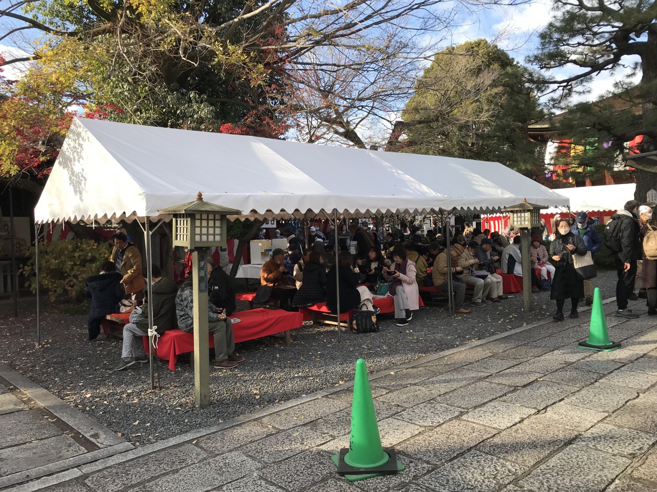 朝9:30に千本釈迦堂に着きましたがもう長蛇の列、チケットを買って毛氈を敷いた休憩所でじっくりほくほくに煮られた大根を美味しく頂きました。