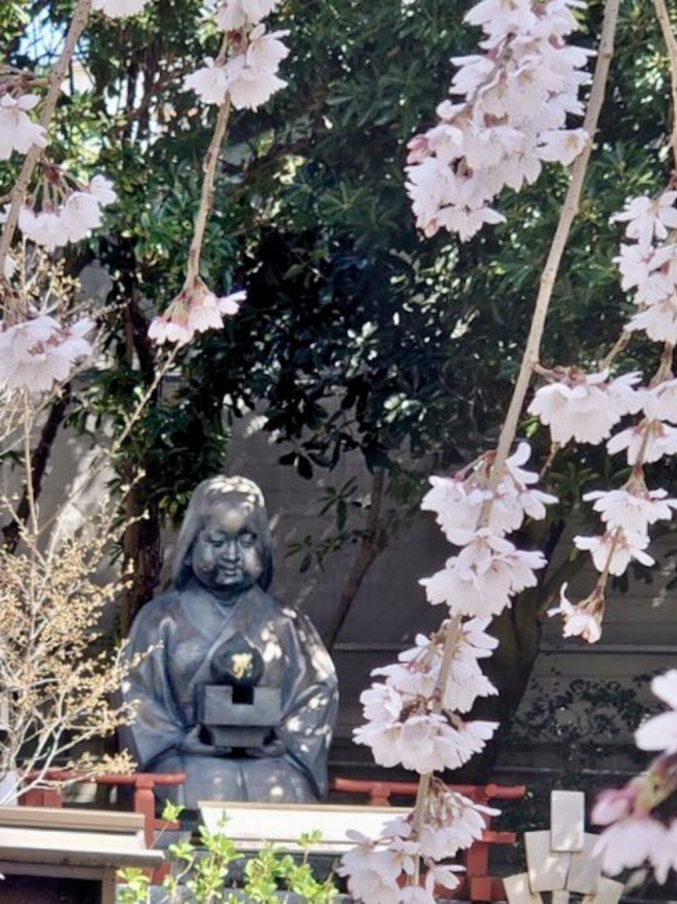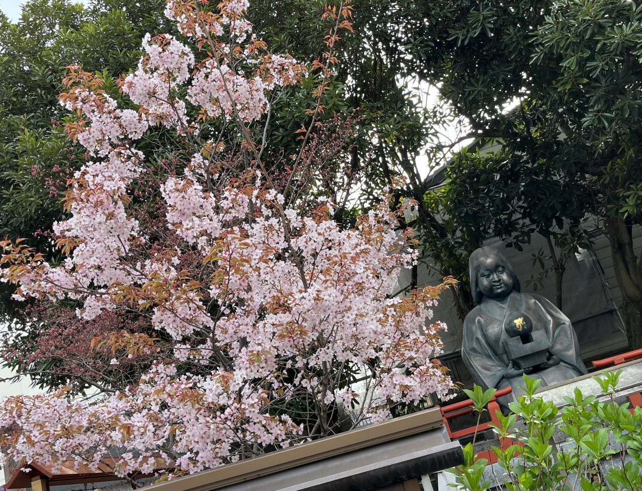本堂の前には、「おかめ桜」と呼ばれる枝垂桜