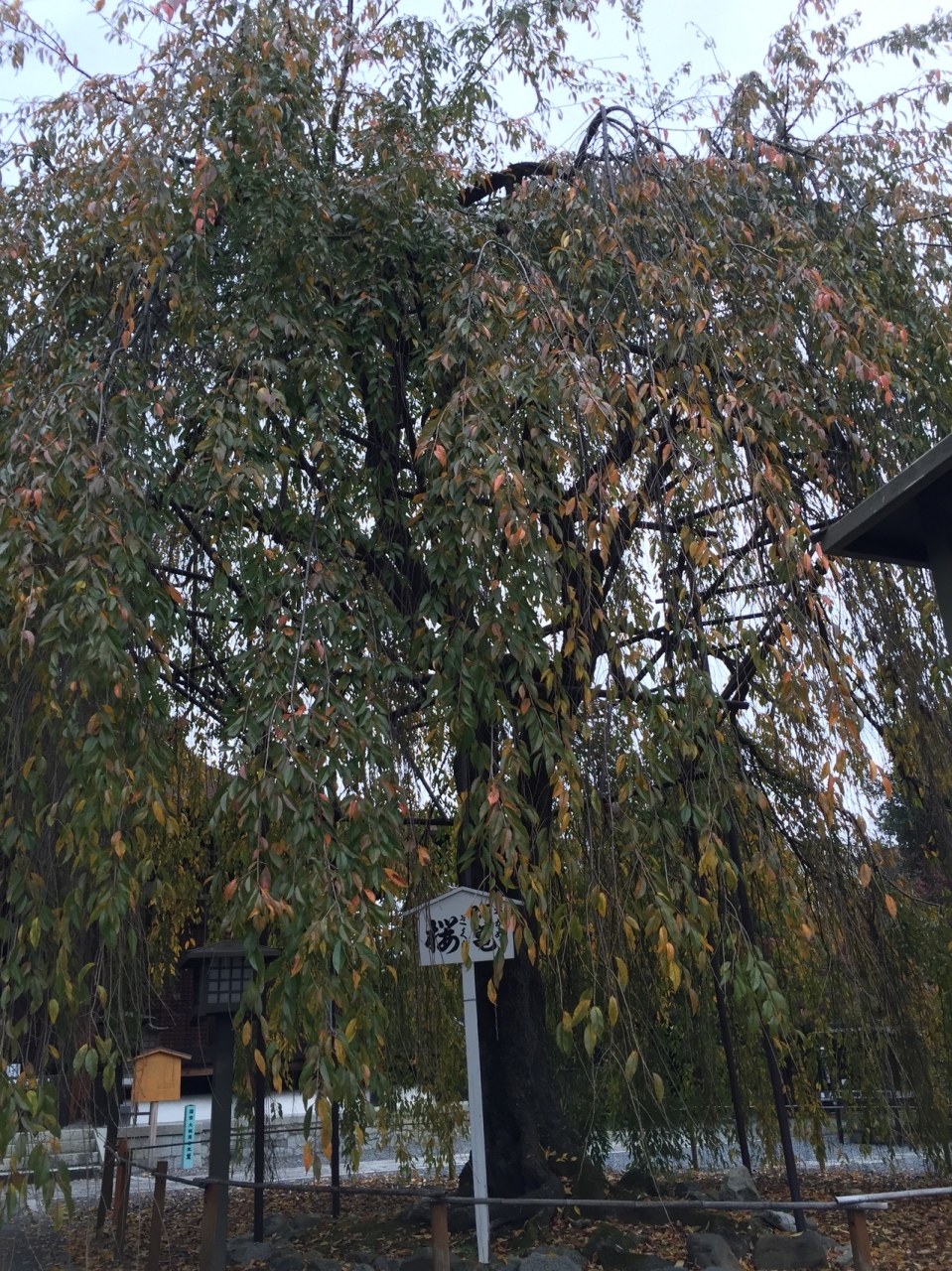 参道から山門をくぐるとまず目に入るのが枝垂桜です。