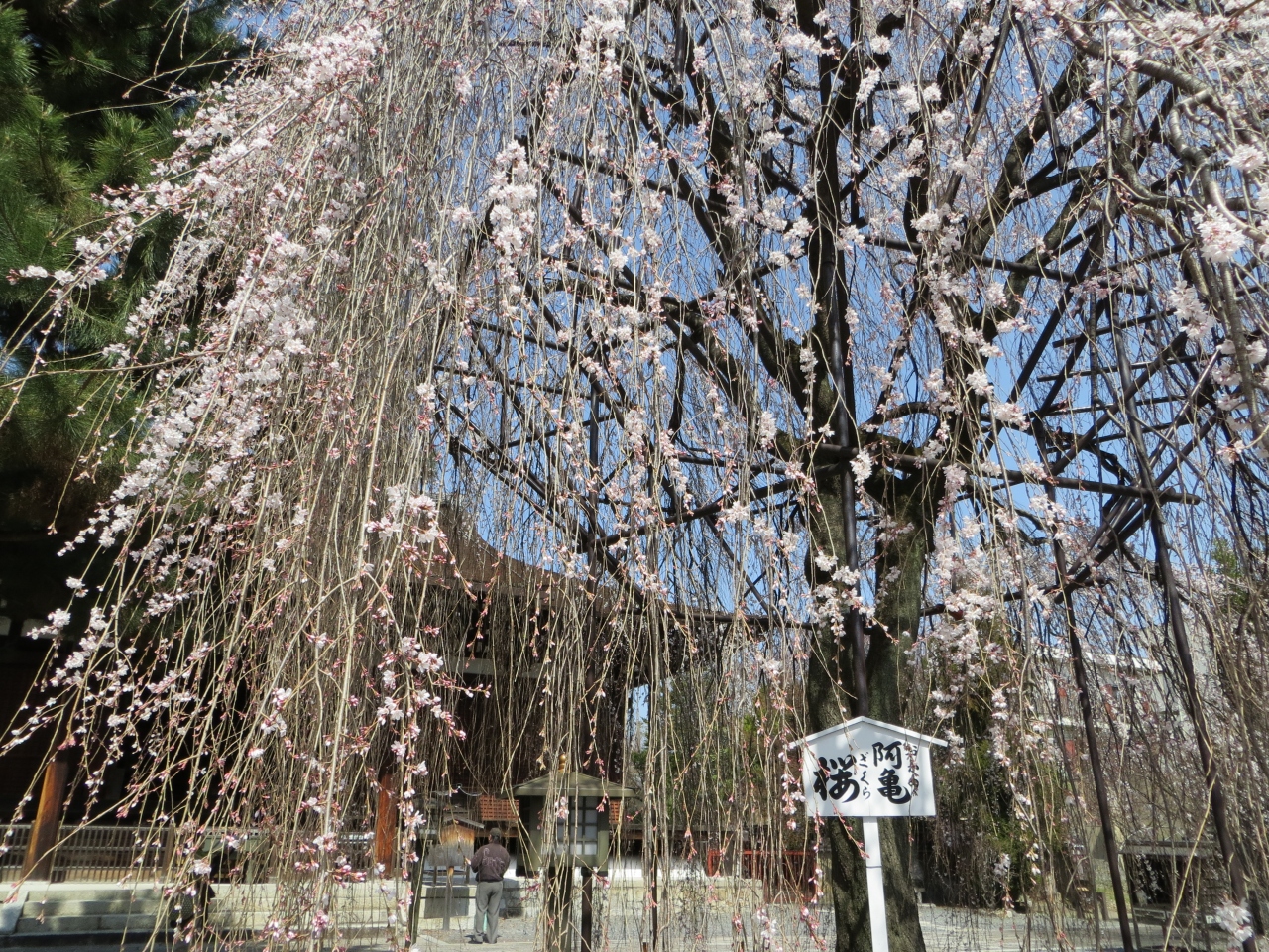 千本釈迦堂は、応仁の乱で京都市内に奇跡的に残った3つか4つの建物の一つ。本堂は国宝です。写真の桜は「お亀桜」。おかめは、大... 続きを読む工の棟梁の妻だったのですが、その夫が誤って、四心柱の一つを短く切ってしまいました。お亀は「それでは桁組みでやってみたら」と進言。これにより、無事造営が完了しました。しかし、名工である主人の名を汚してはならないと、上棟式の前に自害。知恵もあるし、夫に尽くしたお亀のお話です。境内に大きな像がありました。また、忘れてはならないのは、500円の拝観料は掛かりますが、仏像群。木造六観音像の6躯は定慶の作。聖観音、十一面観音、千手観音、如意輪観音、馬頭観音、准胝観音のすばらしさはピカイチ。京都でもナンバーワンかもしれません。