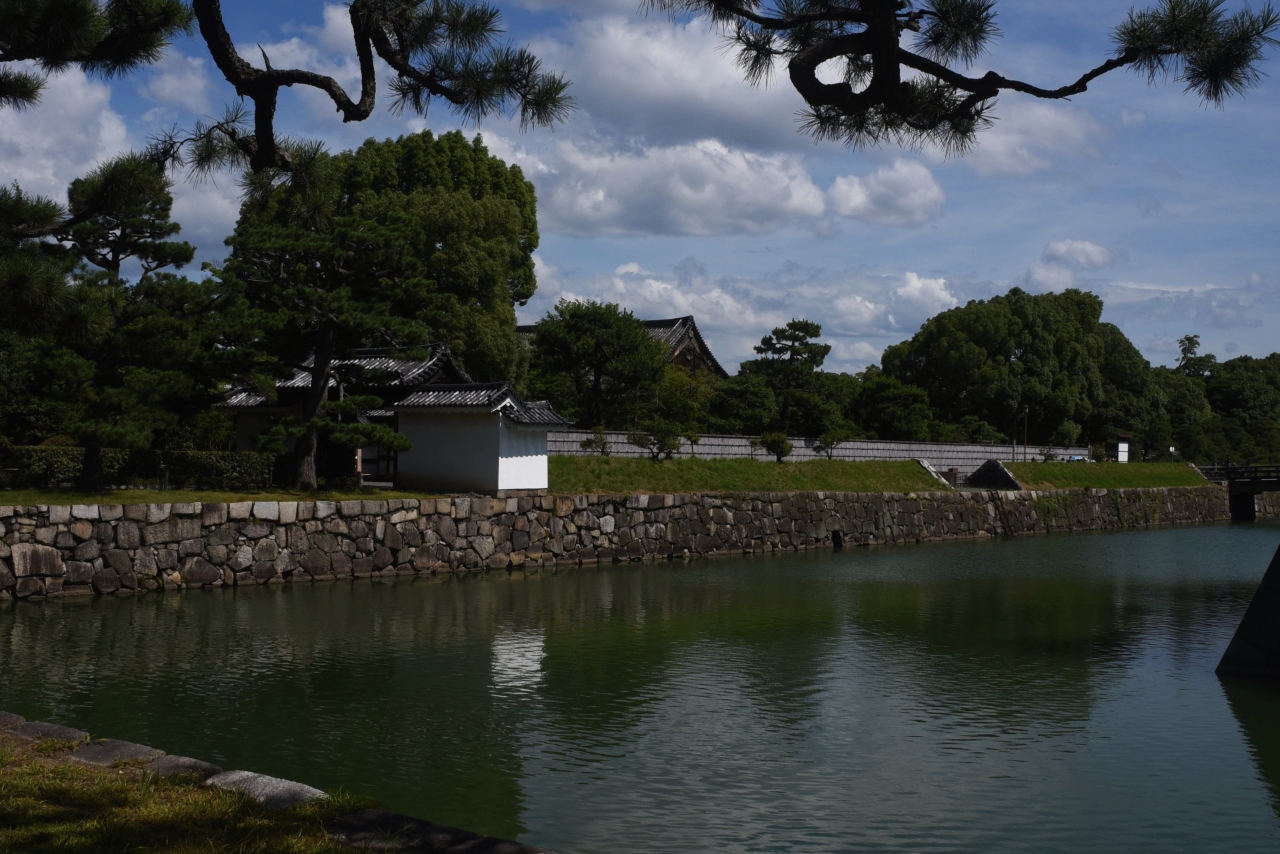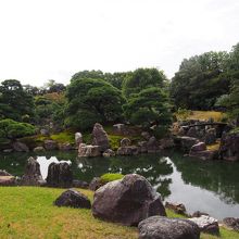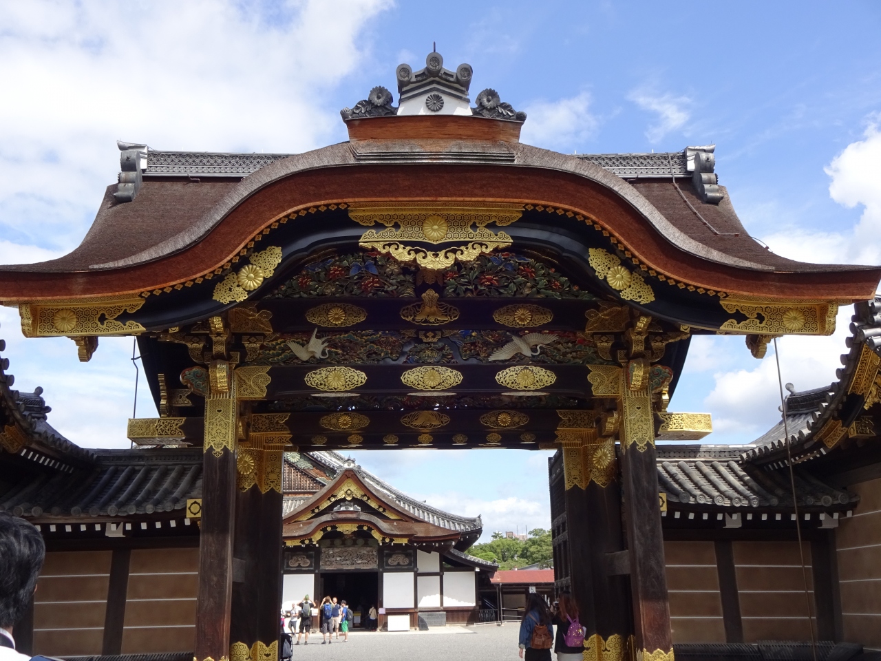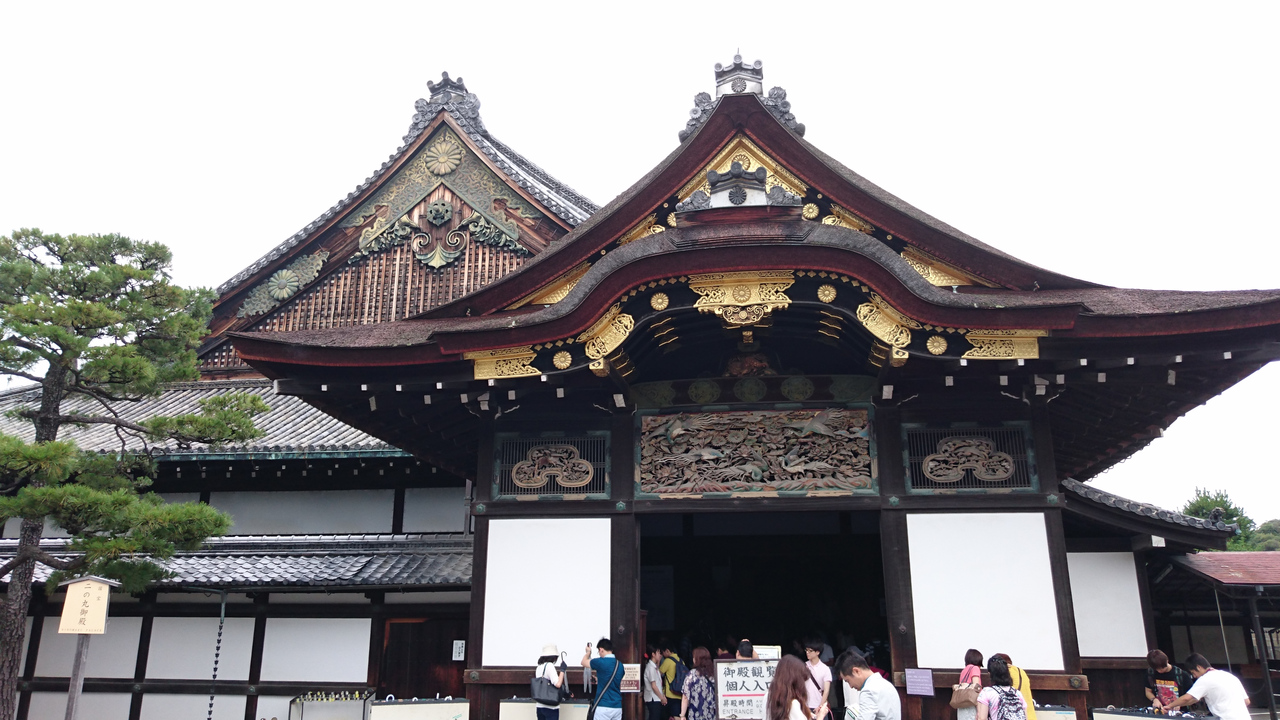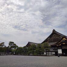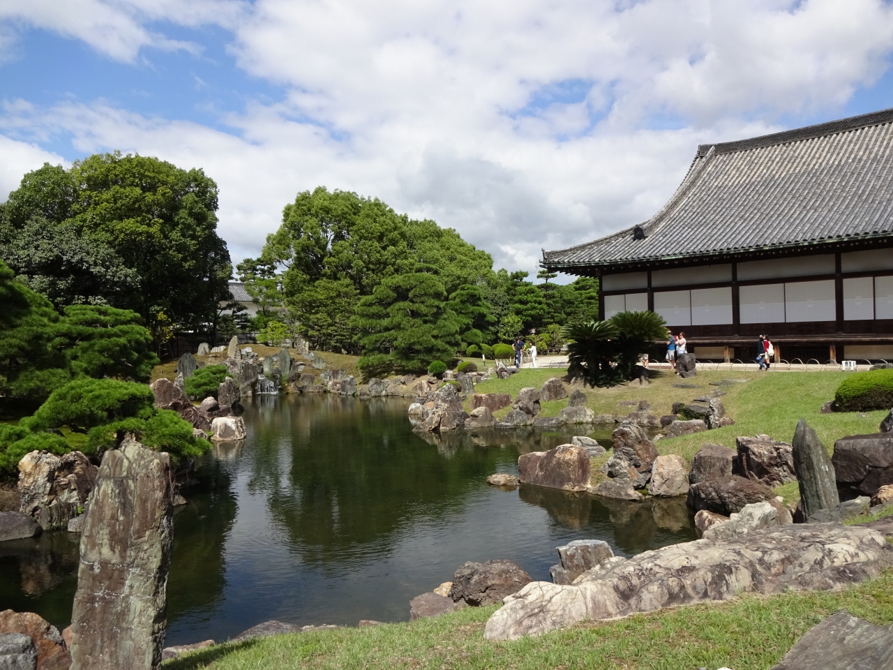 徳川家康が上洛時の宿舎として築城。家康と秀頼の二条城会見、慶喜の大政奉還の発表が行われた。二の丸御殿は、武家風書院造の代表的な建築で、各部屋の襖絵は狩野派の作品。廊下は鶯張りといわれ、各所に施された欄間彫刻、飾金具などの装飾が華麗な桃山文化を伝える。二の丸庭園は豪壮な石組みの書院造庭園。本丸御殿は明治中期に京都御所の旧桂宮御殿を移した公家風の瀟洒な建物で、本丸庭園は、芝庭風築山式庭園になっている。
