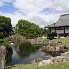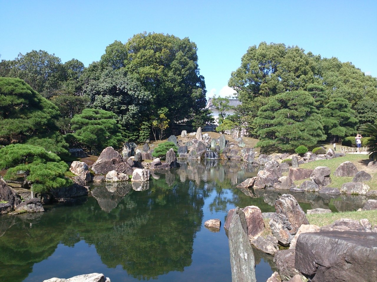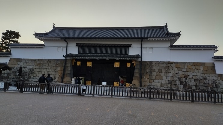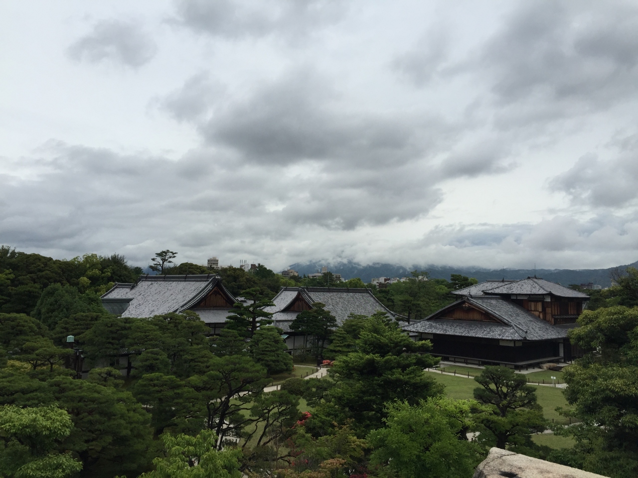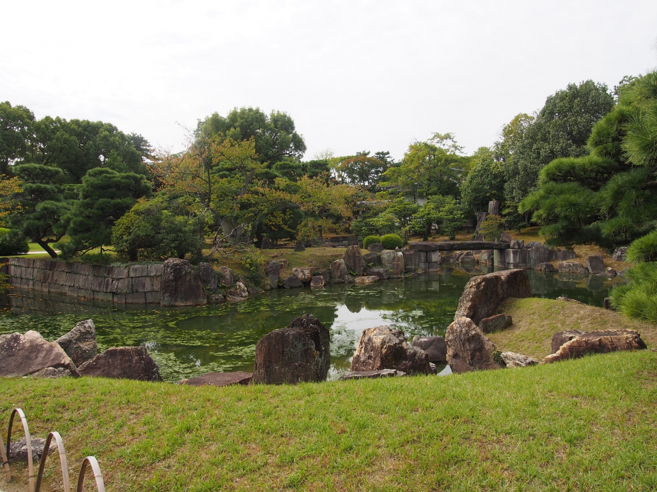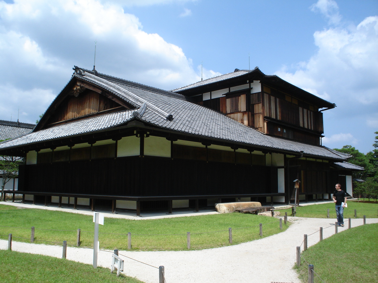 徳川家康が上洛時の宿舎として築城。家康と秀頼の二条城会見、慶喜の大政奉還の発表が行われた。二の丸御殿は、武家風書院造の代表的な建築で、各部屋の襖絵は狩野派の作品。廊下は鶯張りといわれ、各所に施された欄間彫刻、飾金具などの装飾が華麗な桃山文化を伝える。二の丸庭園は豪壮な石組みの書院造庭園。本丸御殿は明治中期に京都御所の旧桂宮御殿を移した公家風の瀟洒な建物で、本丸庭園は、芝庭風築山式庭園になっている。