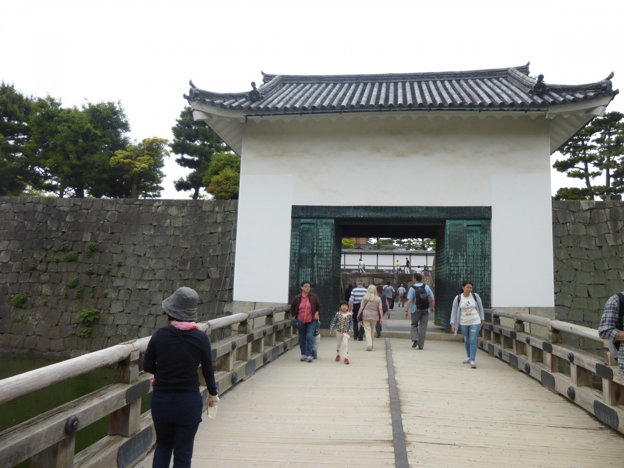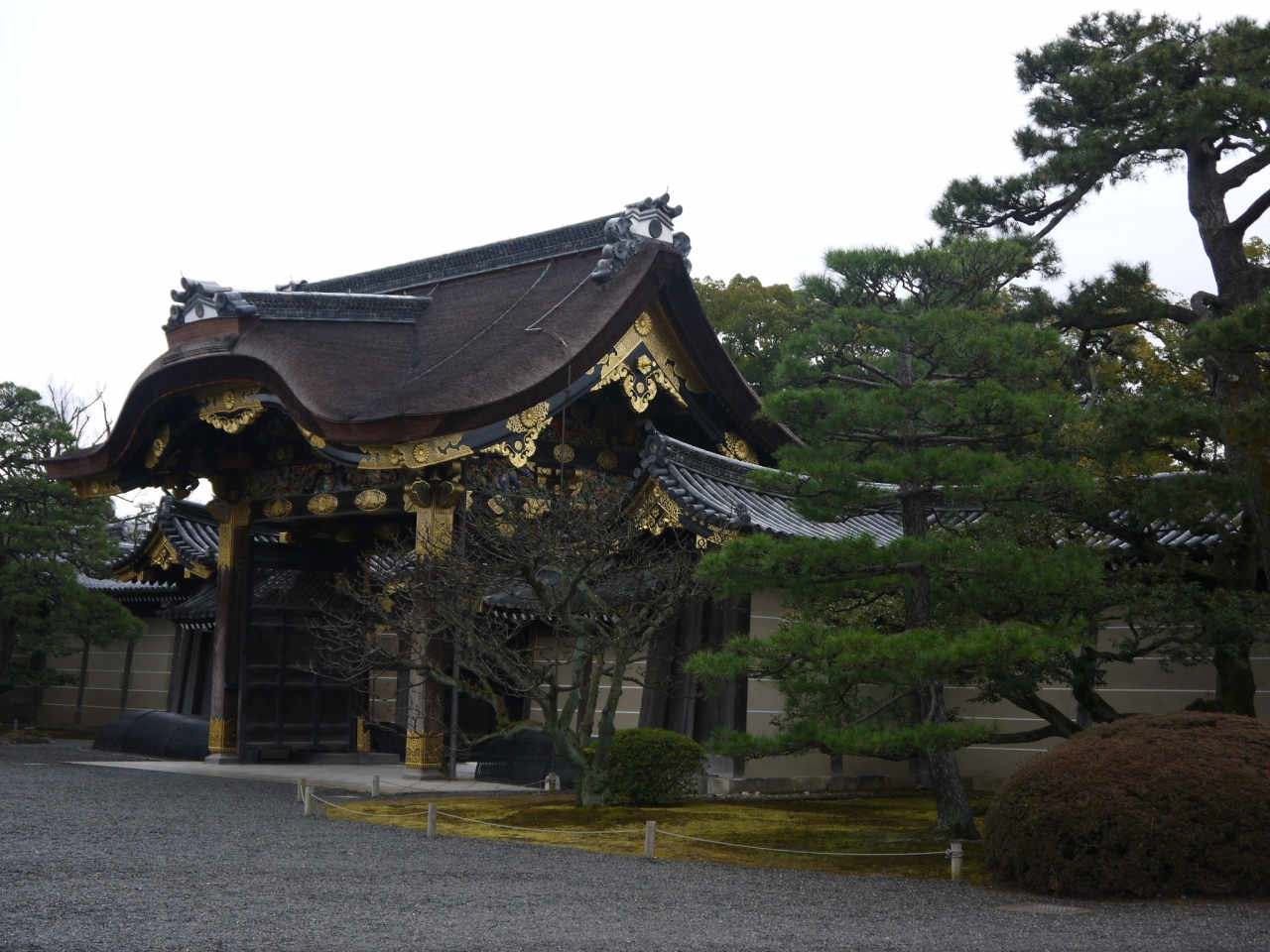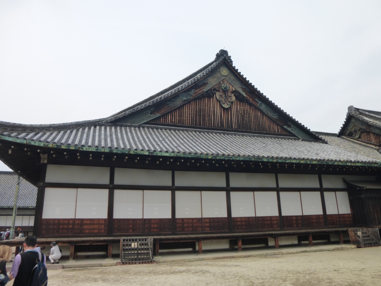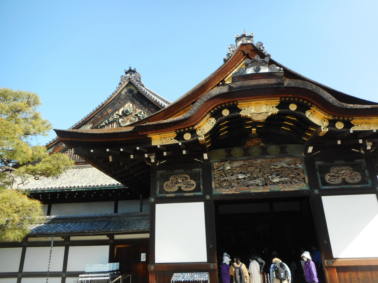 続きを読む下沿いに多くの部屋が並びますがそれぞれに使用目的があり興味深く見学しました。各間の襖には狩野派の障壁画が描かれています。探幽は松に鷹といった豪壮な絵を得意とし、対照的に弟の尚伸は優美な花鳥図を描いており、前者が公の間、後者がプライベートな間と使い分けられています。ともに20代の若い頃の作品です。御殿内は日焼けを防ぐために暗くしてありました。列をなして廊下を進む観光客は国際色豊かで英語や仏語のガイドが聞こえました。有名な大政奉還の間もありやはり一番の人だかりでした。御殿の後は二の丸庭園を鑑賞しました。小堀遠州作の書院造の庭園はどの方角から眺めてもそこが中心となるように作庭されておりその技には感嘆します。池のそばの大ぶりの桜も見事でした。唐門に始まり、御殿、庭園と見所満載の二条城でした。