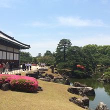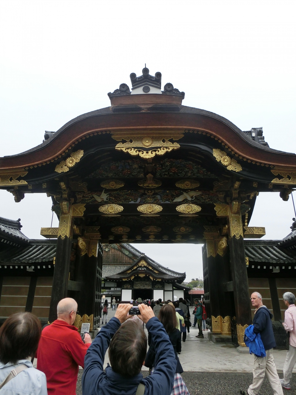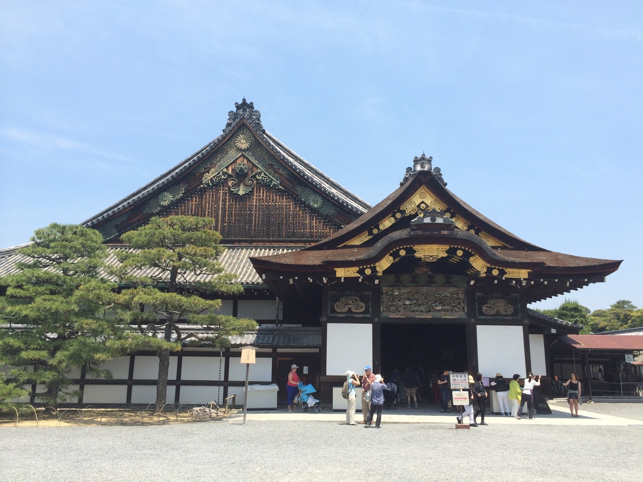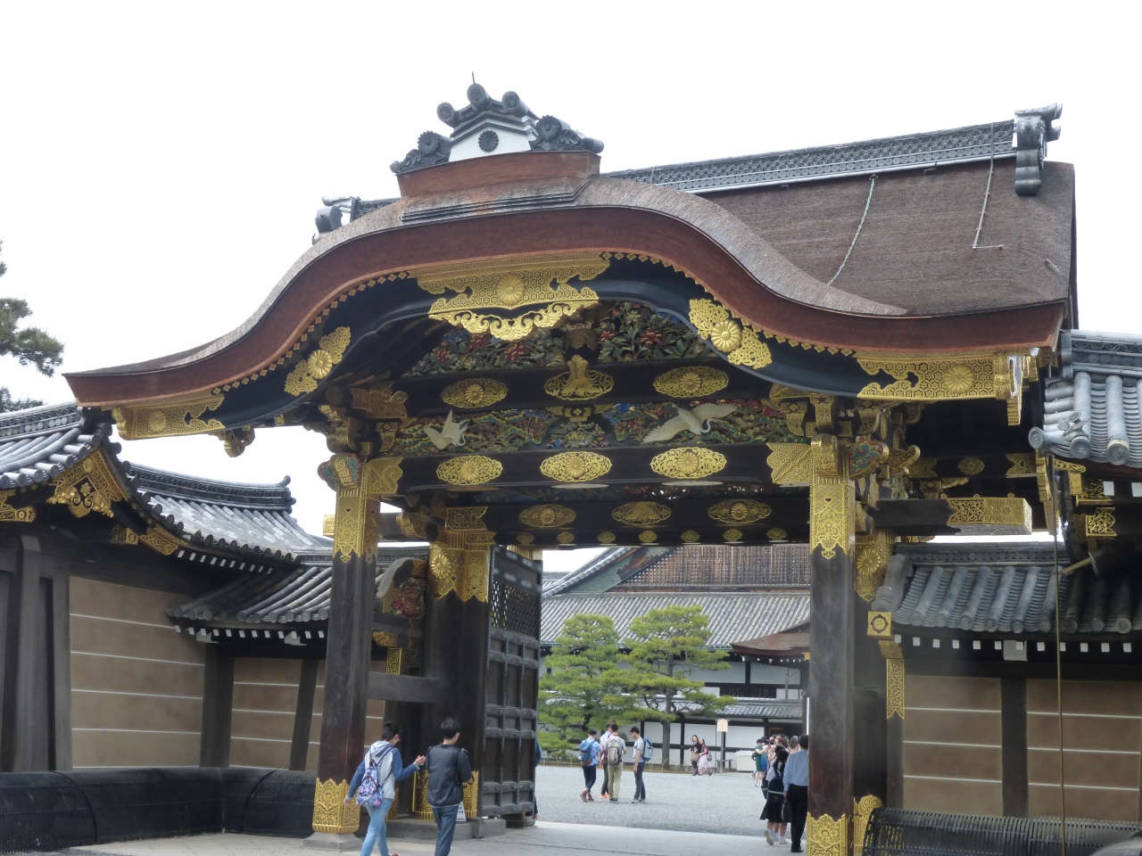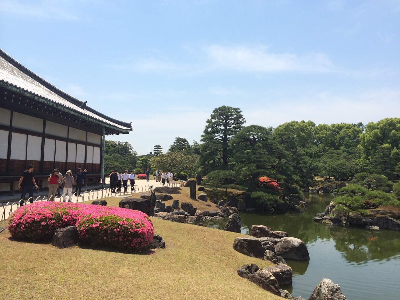 続きを読む下沿いに多くの部屋が並びますがそれぞれに使用目的があり興味深く見学しました。各間の襖には狩野派の障壁画が描かれています。探幽は松に鷹といった豪壮な絵を得意とし、対照的に弟の尚伸は優美な花鳥図を描いており、前者が公の間、後者がプライベートな間と使い分けられています。ともに20代の若い頃の作品です。御殿内は日焼けを防ぐために暗くしてありました。列をなして廊下を進む観光客は国際色豊かで英語や仏語のガイドが聞こえました。有名な大政奉還の間もありやはり一番の人だかりでした。御殿の後は二の丸庭園を鑑賞しました。小堀遠州作の書院造の庭園はどの方角から眺めてもそこが中心となるように作庭されておりその技には感嘆します。池のそばの大ぶりの桜も見事でした。唐門に始まり、御殿、庭園と見所満載の二条城でした。