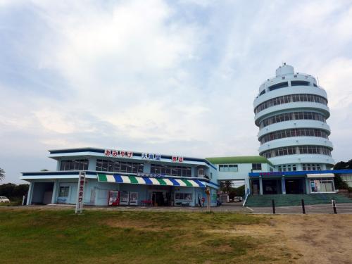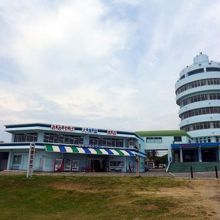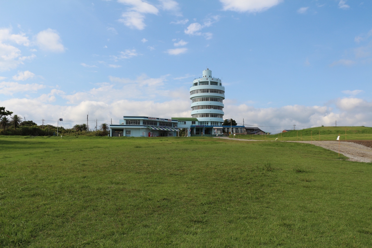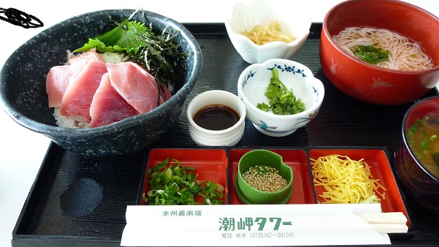 海抜100mからの展望台からは、眼下には黒潮流れる太平洋と、3万坪の芝生を見ることができる。水平線もまん丸く、「地球は丸い。」と実感できるスポット。レストランでは養殖マグロを食べることができます。 (丼もの、定食、マグロバーガー等)