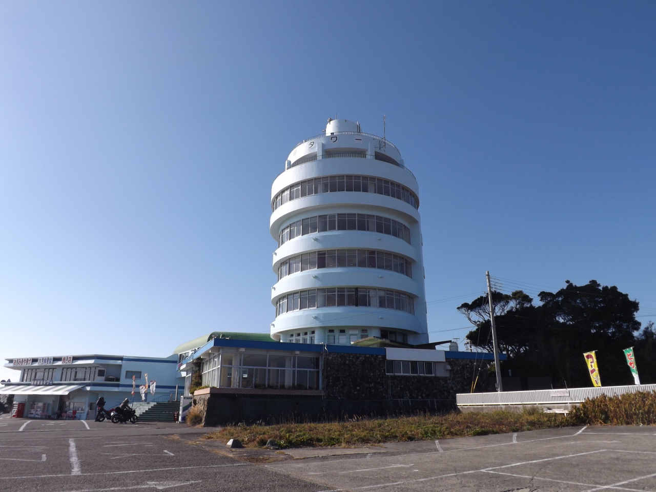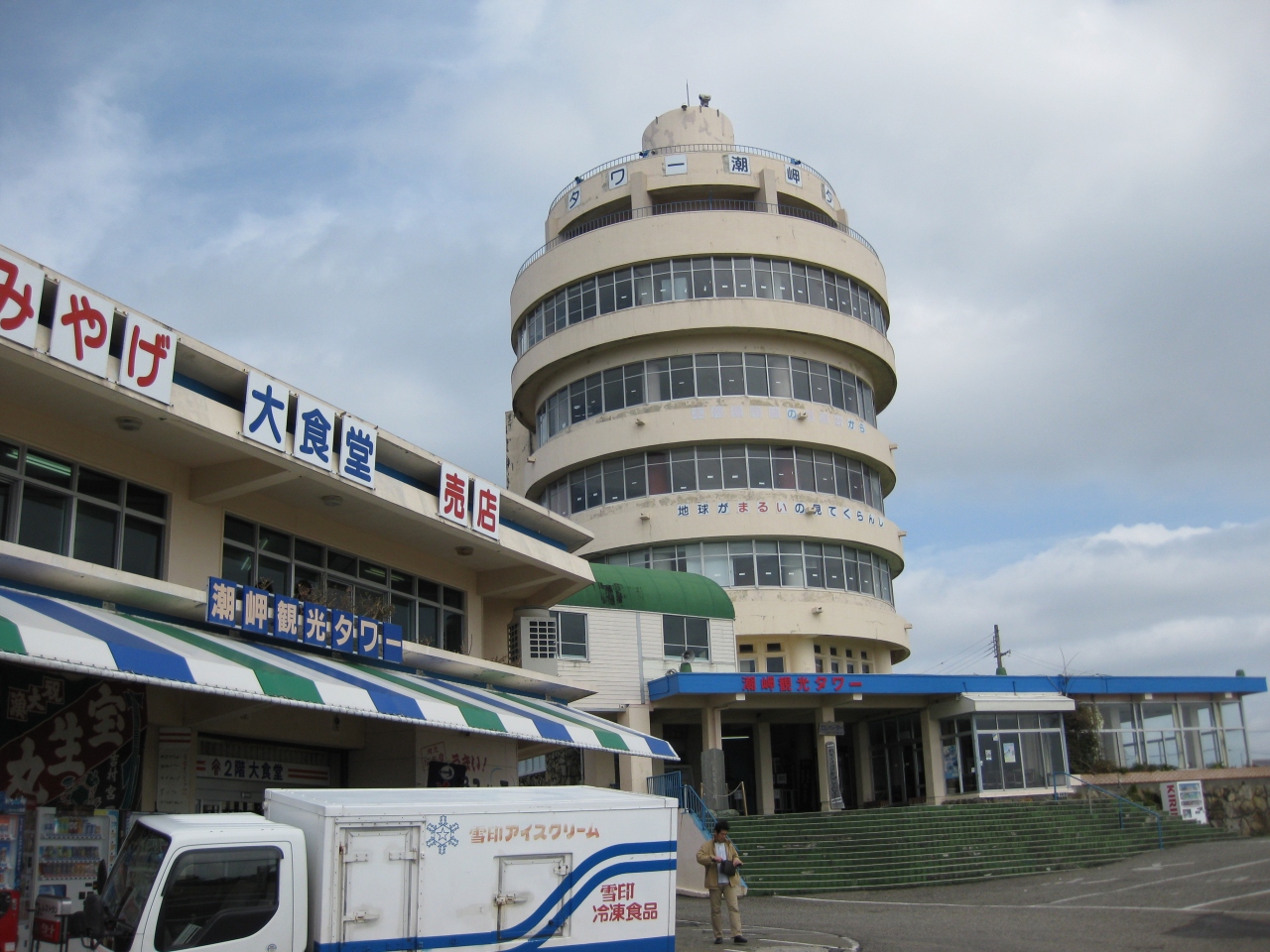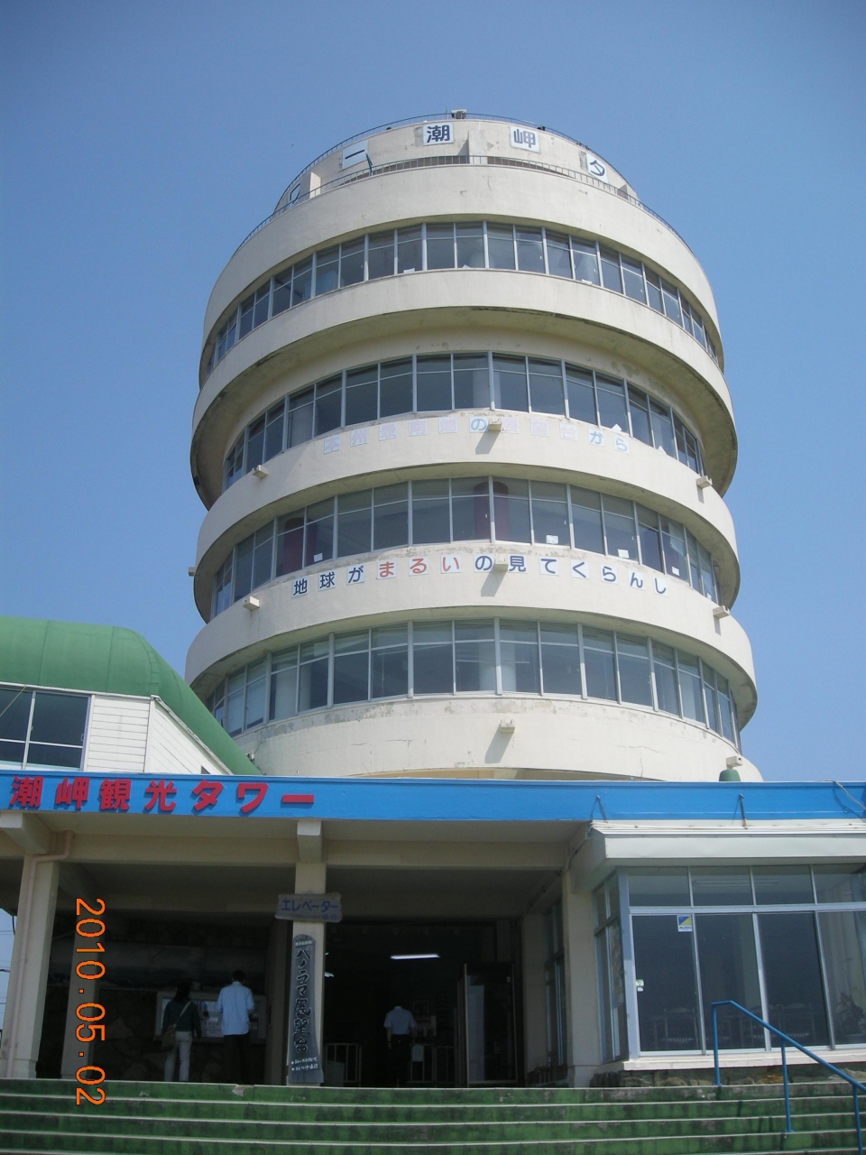潮岬は、本州とは串本市街が位置する砂州で結ばれている陸繋島。国道41号沿いに潮岬観光タワーがあり、タワー7階が展望室。当日... 続きを読むは小雨混じりの強風で外側に出る扉の開閉が禁止されていた。晴れていれば展望台からは潮岬灯台、望楼の芝(岬の先端に広がる約10万平方メートル大芝生)が見渡せ、更には眼前に太平洋の水平線が弧を描き地球が丸いことを実感できるとされているだけに残念だった。