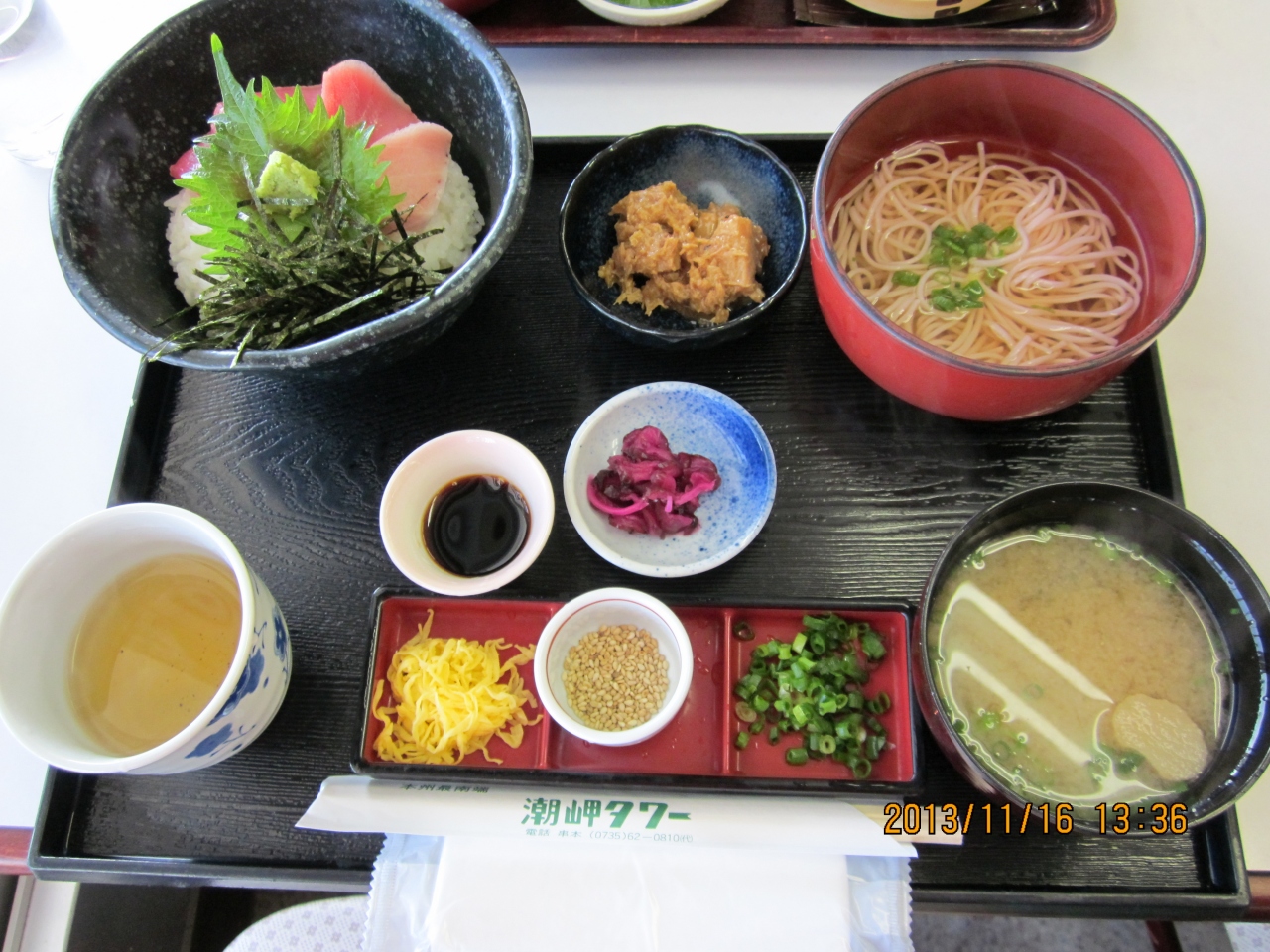 タワーへの入館料は300円だが、串本町観光協会会長名の本州最南端訪問証明書(はがき大)が貰える。タワーにはレストラン(2階)、土産物屋が併設されている。レストランでは、つと知名度の上がった近大養殖マグロを使ったメニューが並んでいる。1階の土産物屋で太刀魚のみりん干しを天ぷらにしたものを試食したが美味しかったので土産に購入した(焼くと焦げやすいが、天ぷらならGood)。 閉じる投稿日:2013/12/22