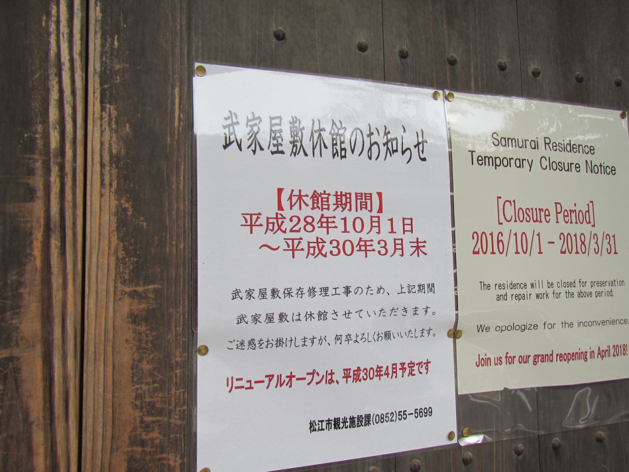 2018年3月末まで改修工事中