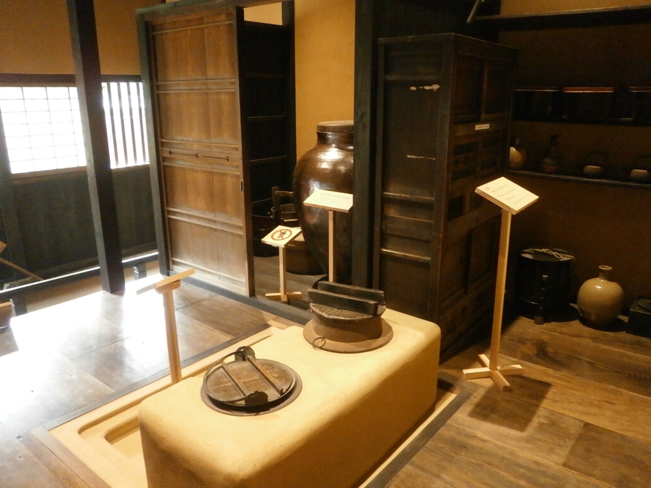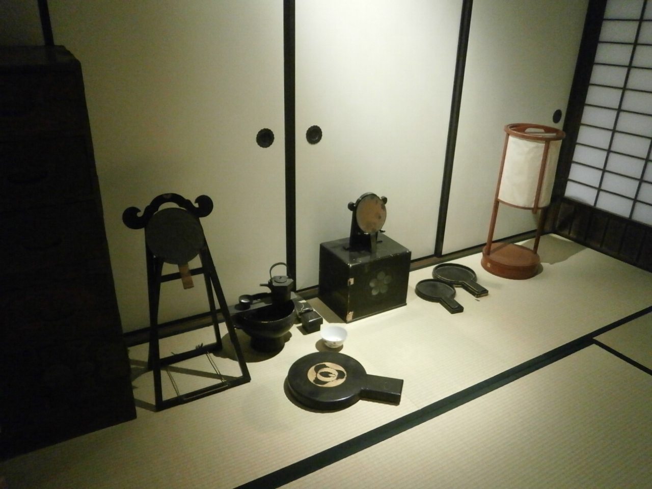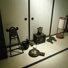 この屋敷を資料展示施設に利用したのが武家屋敷で、面積が約70坪の母屋と中間の住居として用いられていた長屋と長屋門、ほかに裏門、庭園が現存していて、この屋敷のような中級武士の住んだ建物が、当時のまま保存されているのは、全国的にも貴重なものといえます。館内には刀、槍、薙刀などの武器、裃や化粧道具・お歯黒道具、煙草盆、台所用具など武士の日用品が展示されています。 この屋敷のような中級武士の住んだ建物が、当時のまま保存されているのは、全国的にも貴重なものといえます。