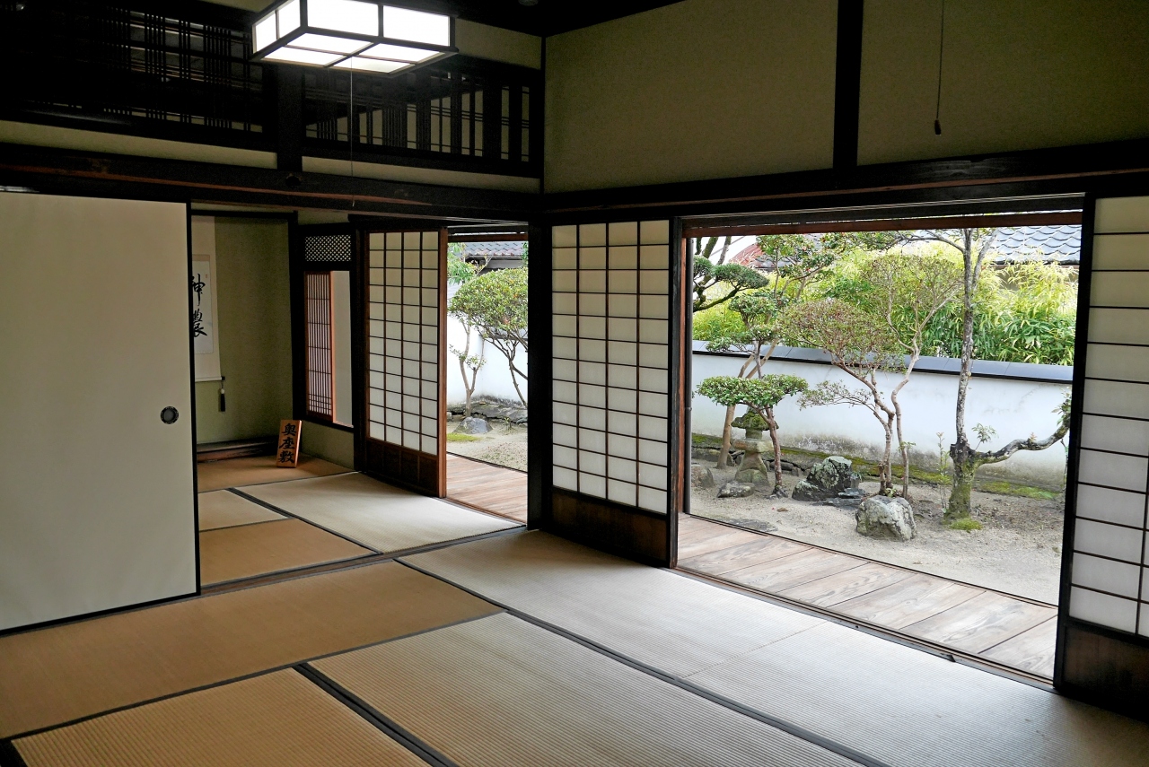 江戸時代後期に建てられたという旧埴原家の武家屋敷。備中松山城の藩主の生母の実家として、寺院造りや数寄屋風の格式高い造りなの... 続きを読むだそうです。よく見ると、隣の旧折井家と比べて、趣のある形の火灯窓があります。しかし、こちらには愛嬌のある人形はおらず、室内も全般、暗い感じがしました。