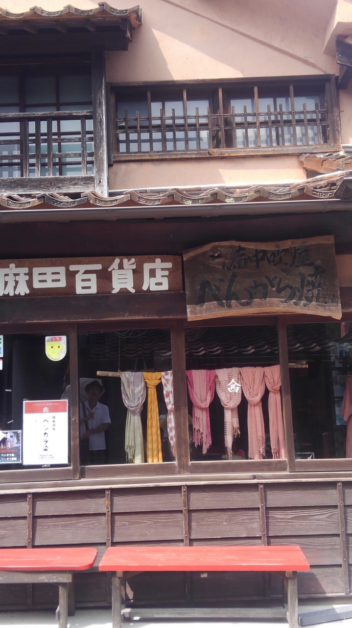 「べんがら屋」前の無料駐車場が街並みと接していて便利でした