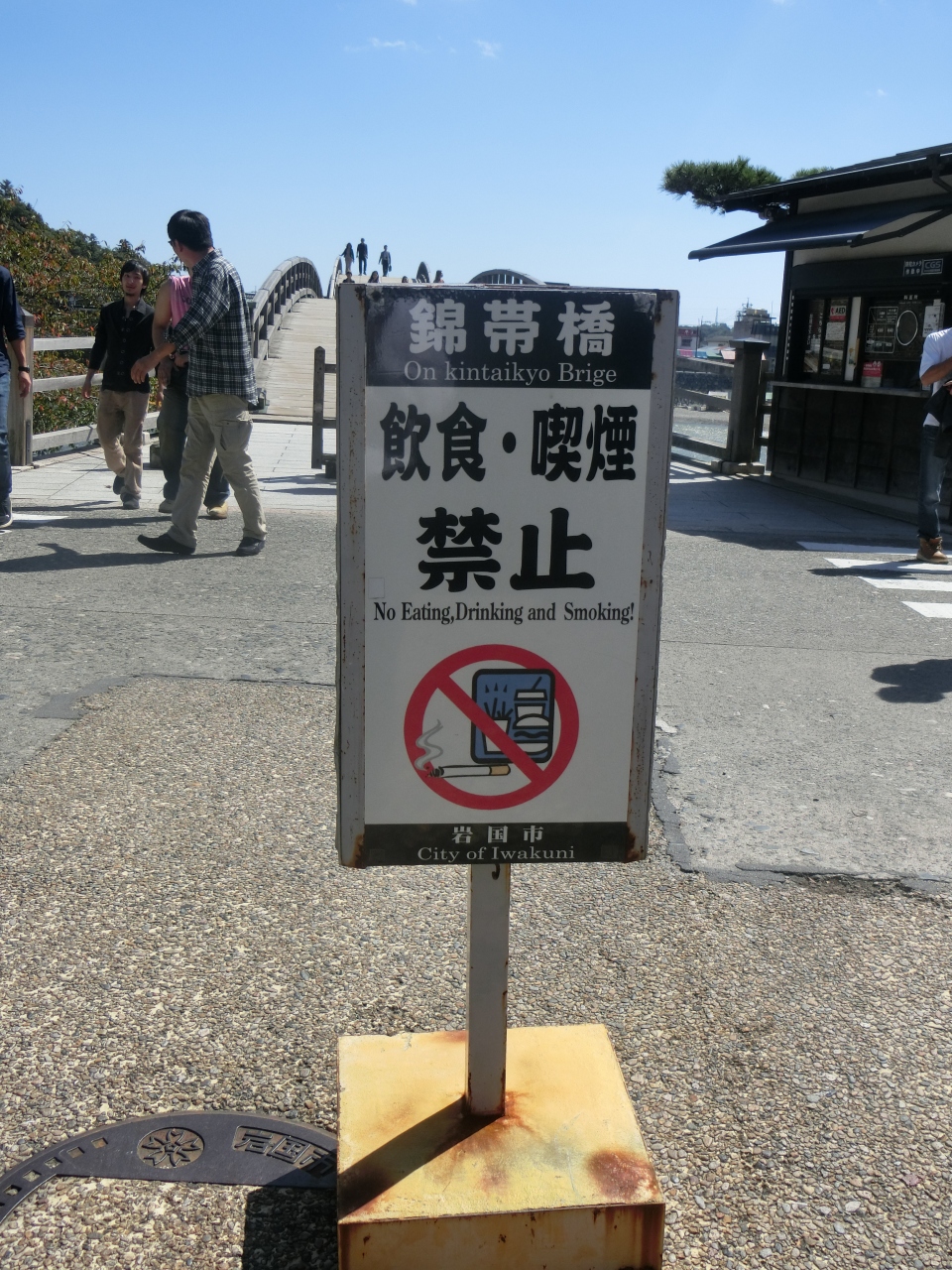 橋を渡って少し行くと毎週日曜日にだけ開いているレトロ館に行ってうまもんの漬物買って、河原に下りて岩国城をバックに錦帯橋の写真を撮ってきました。