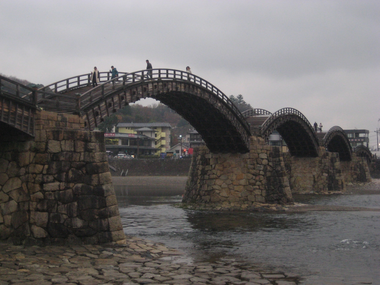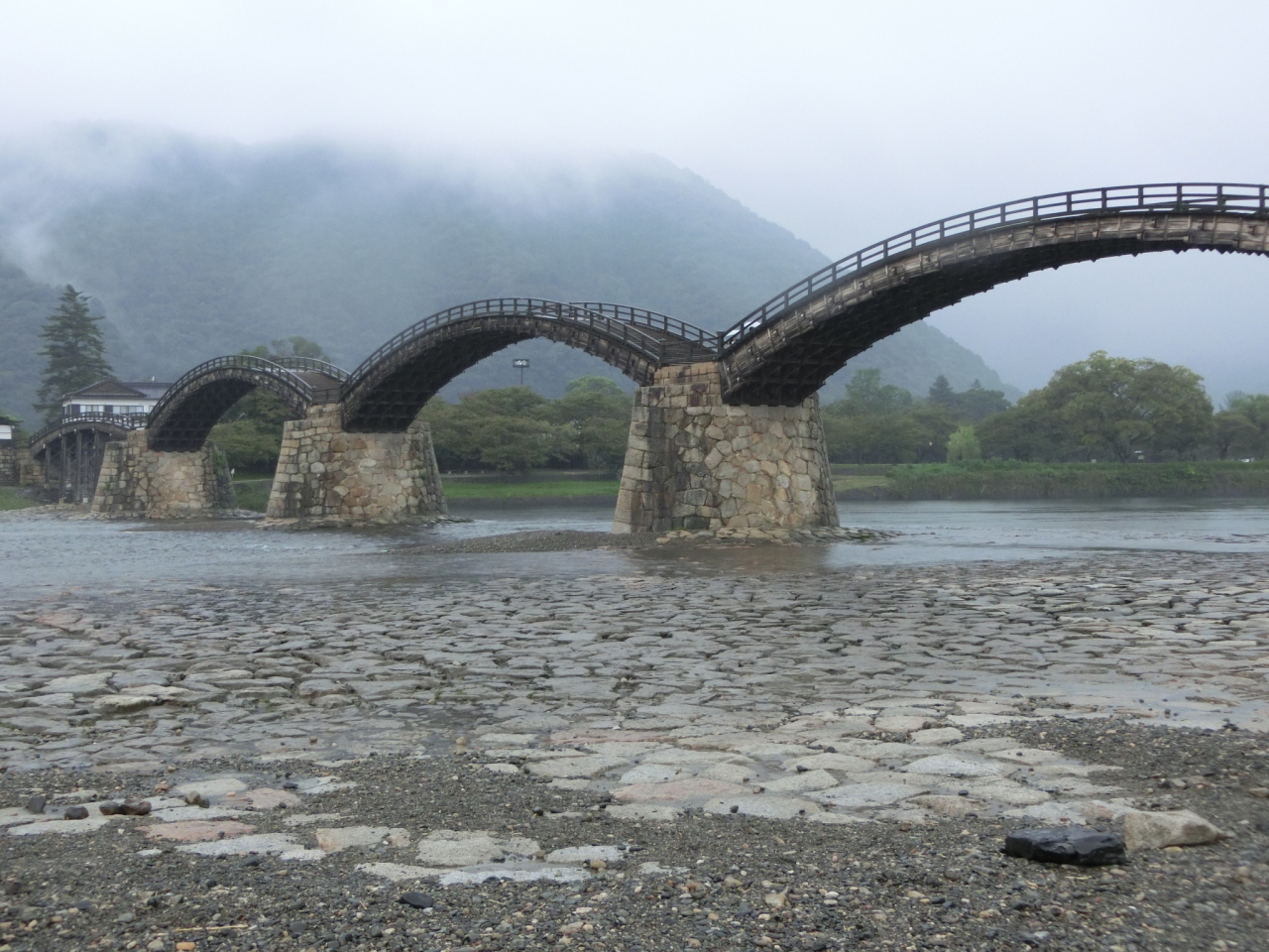 岩国市を流れる錦川に架設された5径間の木造アーチ橋。江戸時代に最初の橋が架けられてから、今日まで改良や架け替えを繰り返しな...  続きを読むがら現在の威容を保っている橋。先人の知恵には驚くばかり、現代の技術なら容易な架橋でしょうが。10年程前に「平成の架替事業」の完成が行われたとのこと