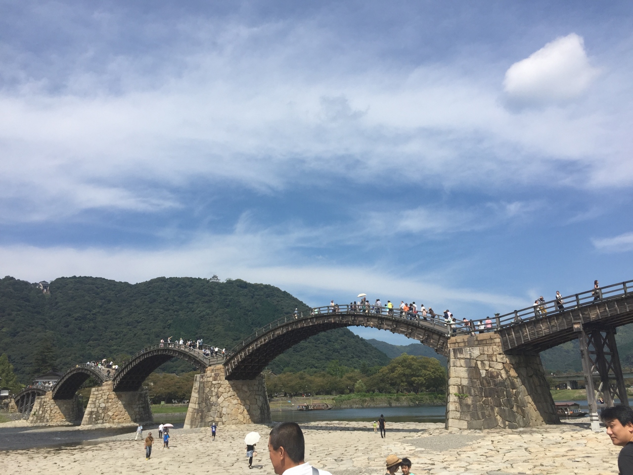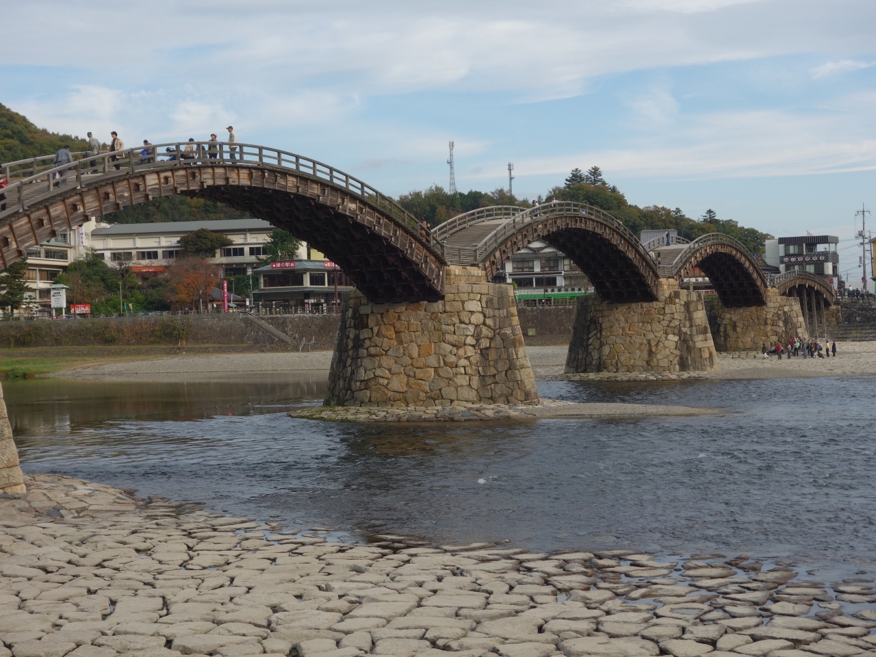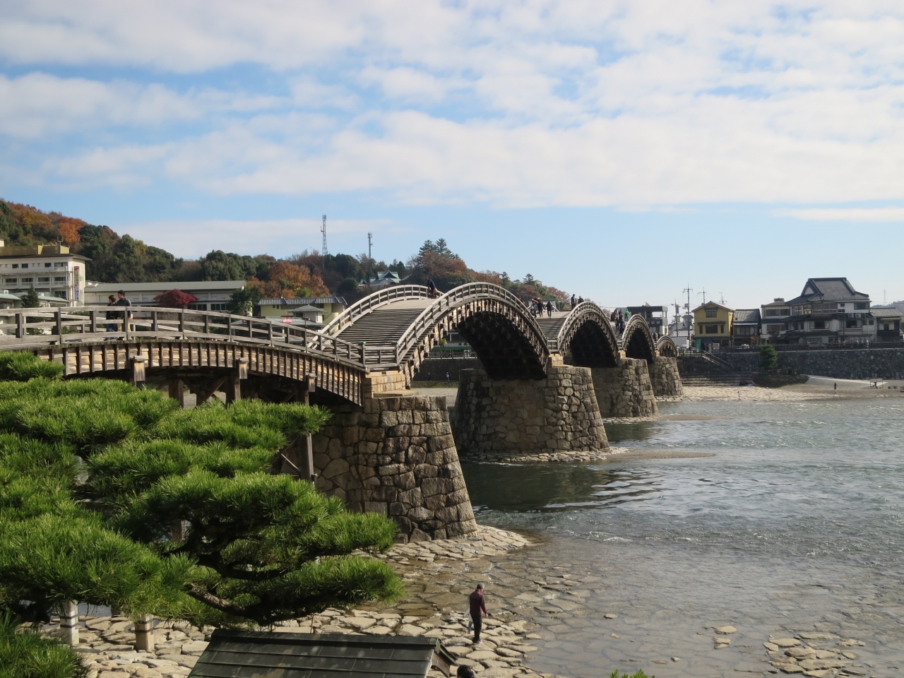 20年以上前に行って以来でした。新幹線の新岩国からタクシーで行きました。平成の初めのかけかえで少しきれいになったようですが...  続きを読む、木の色が少し白っぽいくらいで雰囲気はまったく変わっていませんでした。山の上には岩国城が見えて、今は咲いていませんが川沿いに桜の並木があります。混雑しますが桜の季節が最高だと思います。  閉じる
