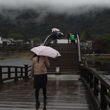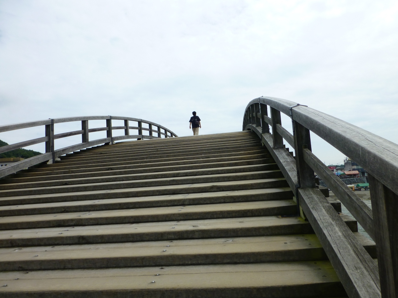 岩国駅からバスが出ているが、1時間に1~2本しかなくアクセスはよくない。岩国駅発のバスは西岩国駅を経由した。橋の入口で通行...  続きを読む料300円を支払った。帰りには、そのチケットを見せる必要があるのでなくさないようにすることが大切。橋は階段になっているが段差は低いが、普通に歩く時の歩幅と階段の1つが合わずに、ちょっと歩きづらかった。思ったよりもアーチがあるので、下る時結構高さを感じた。木製で雨のあとだったせいか、少々滑りやすかったので注意が必要だと感じた。ハイヒールやサンダルでこなくてよかったと感じた。
