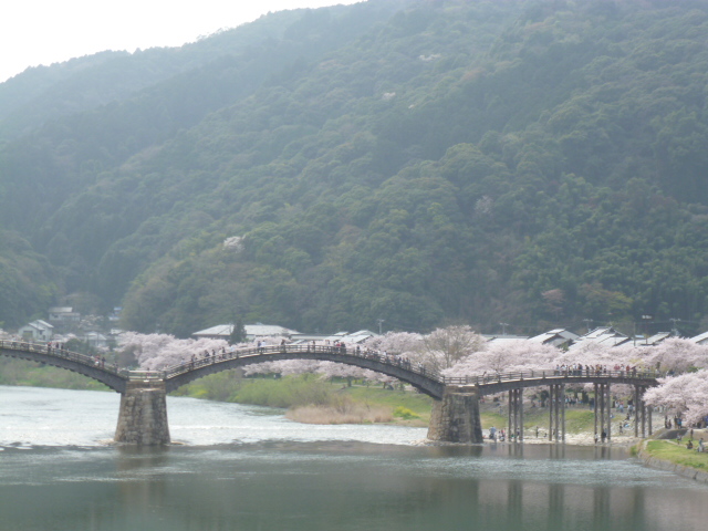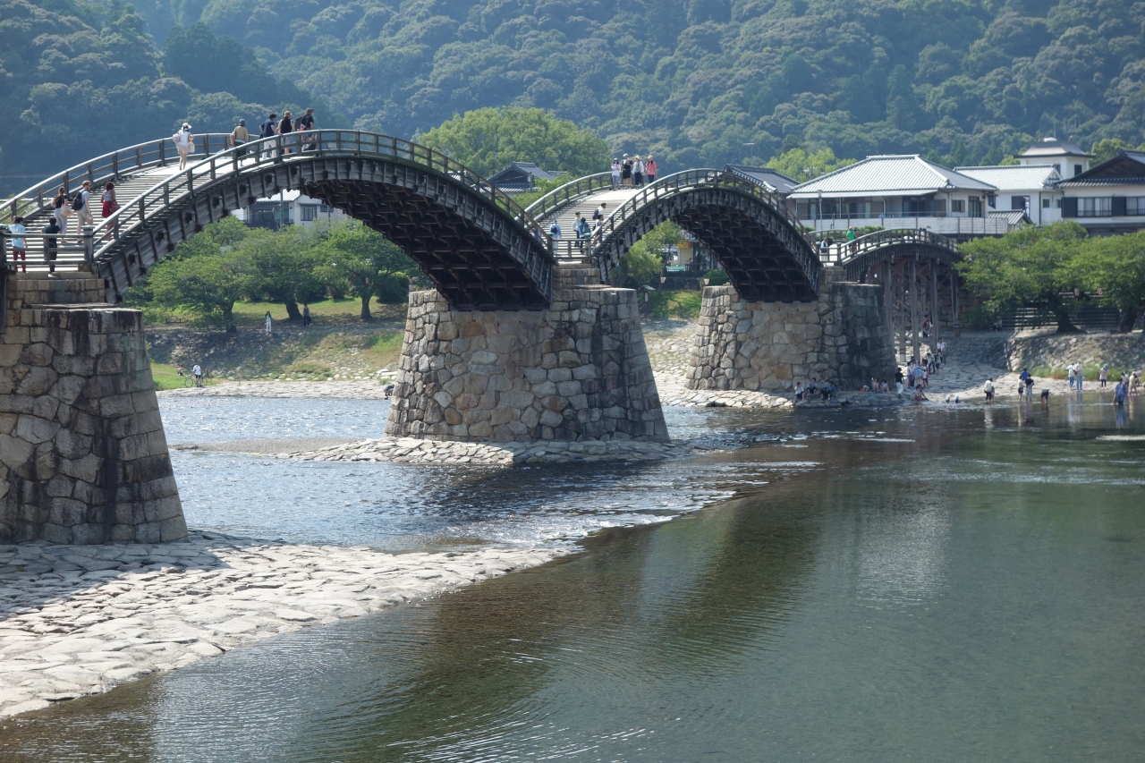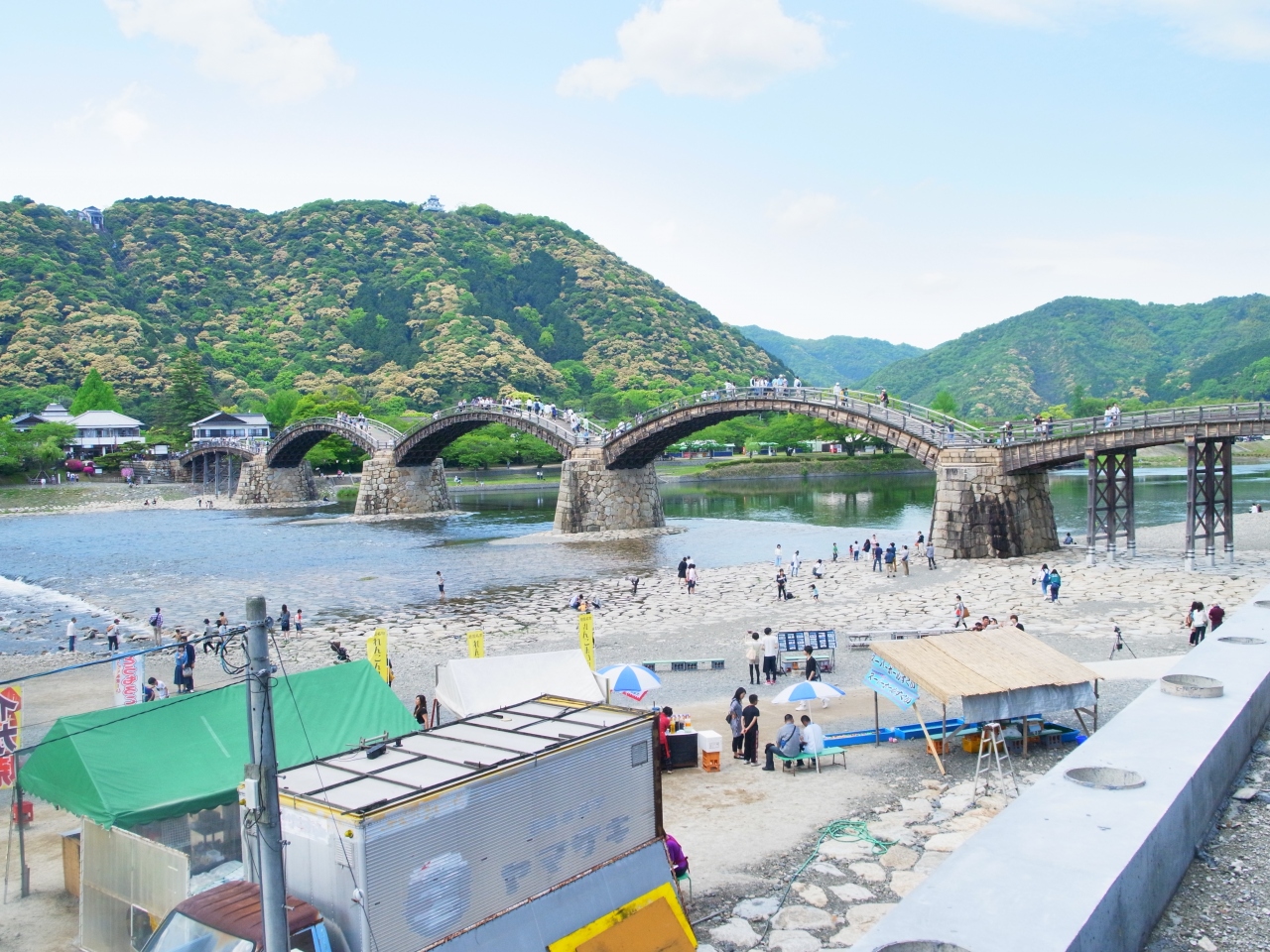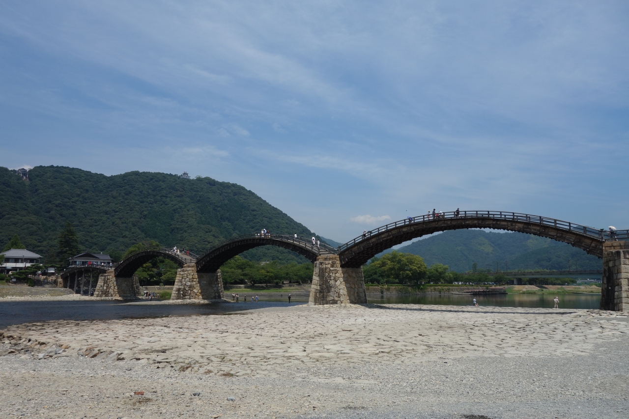 美しい5連のアーチ型の橋と下を流れる錦川の風景はとても美しいです。  閉じる