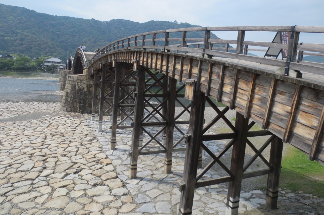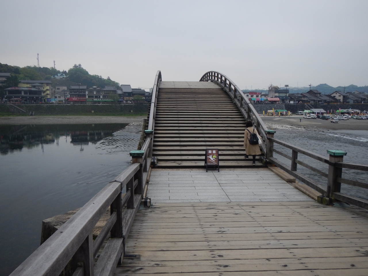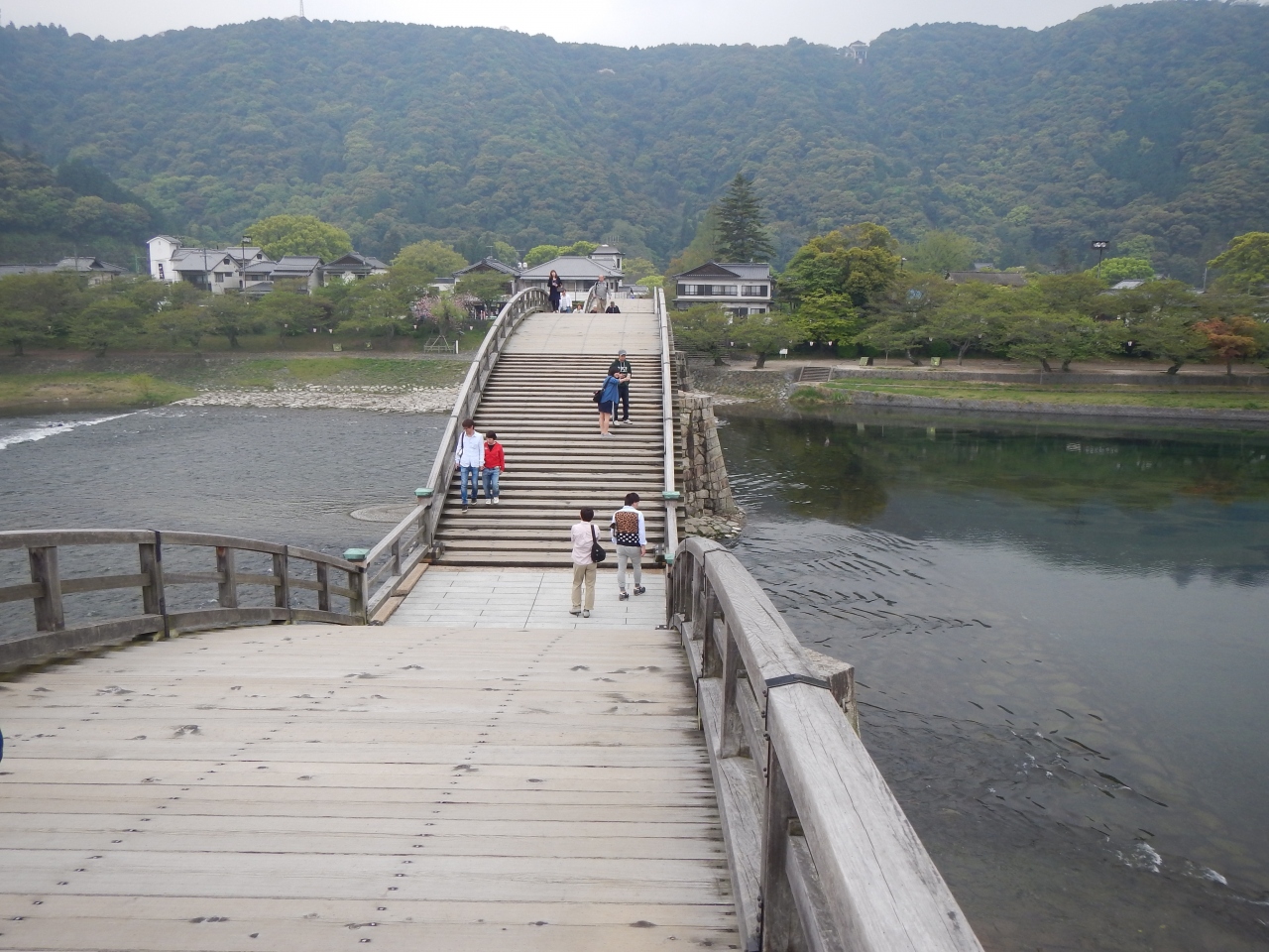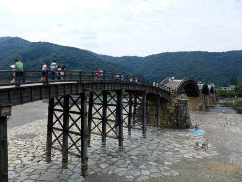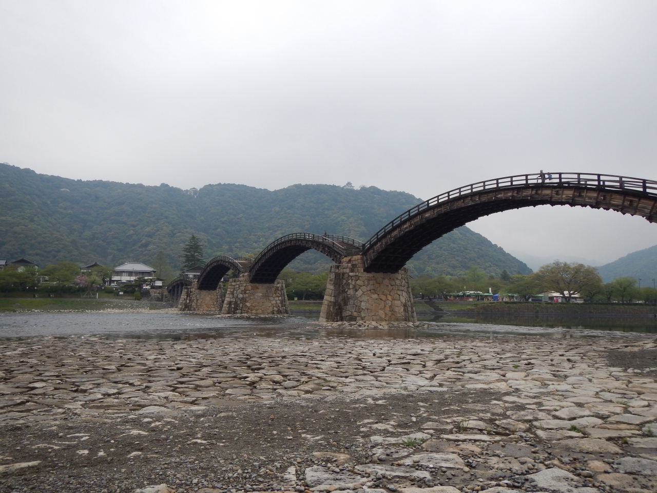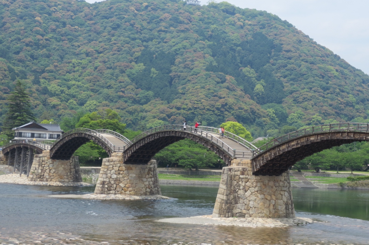 JR岩国駅前から出ているいわくにバスで錦帯橋へ。15分ほどで錦帯橋近くのバス停に到着、川の岸辺にある遊歩道から斜め前方に見...  続きを読むえる錦帯橋は圧巻。実際に橋を歩いてみると、斜めから見えた錦帯橋の景色とは全く違って見える。五連のアーチの角度がきつい部分は、滑り止めのため緩やかな階段状になっている。橋の上から見える錦川の表情も素晴らしい。シラサギが川面の小魚を待ち構えている。橋上からは、ロープウェイや岩国城が見える景色も素晴らしい。   閉じる