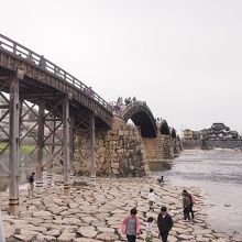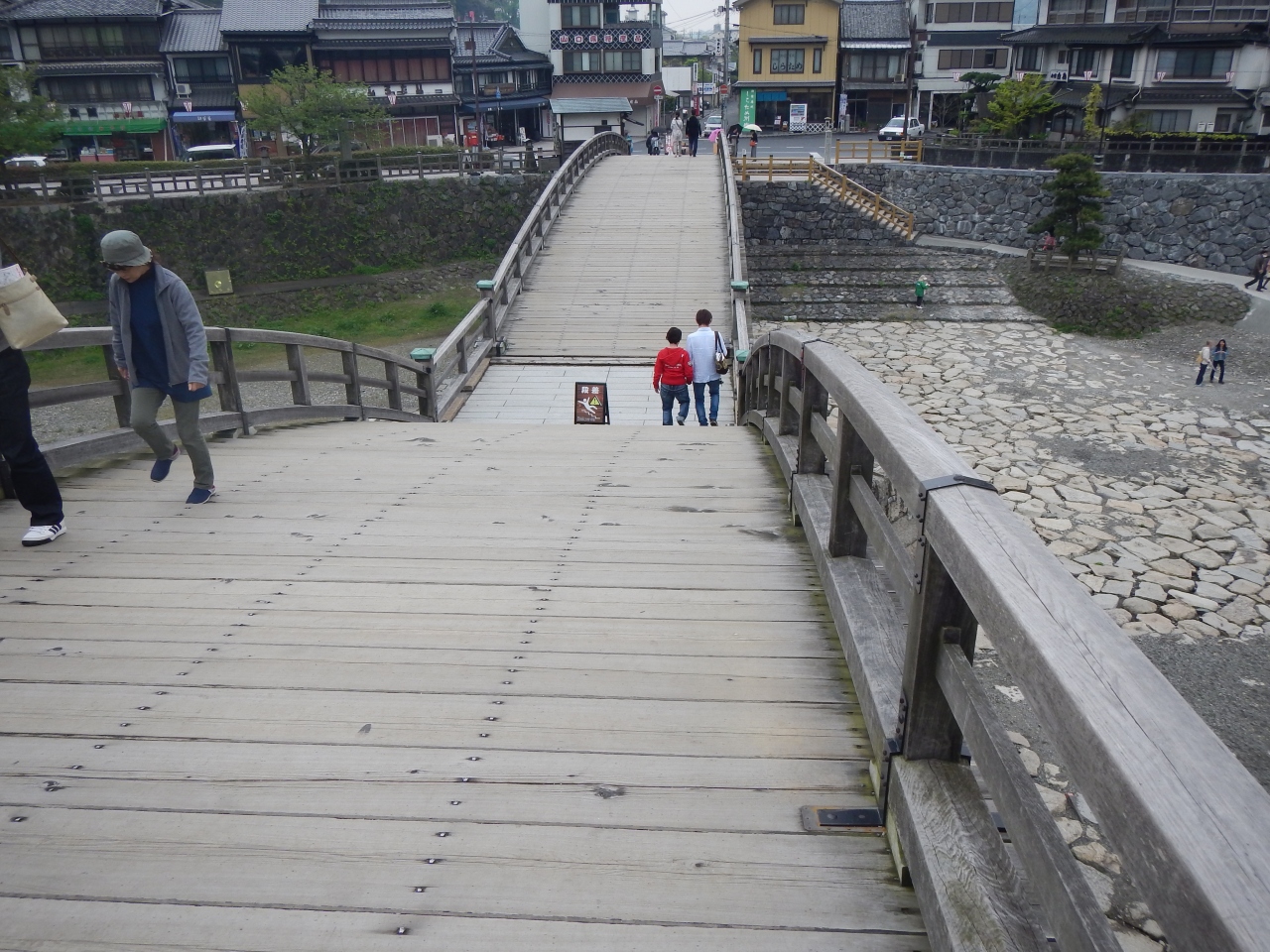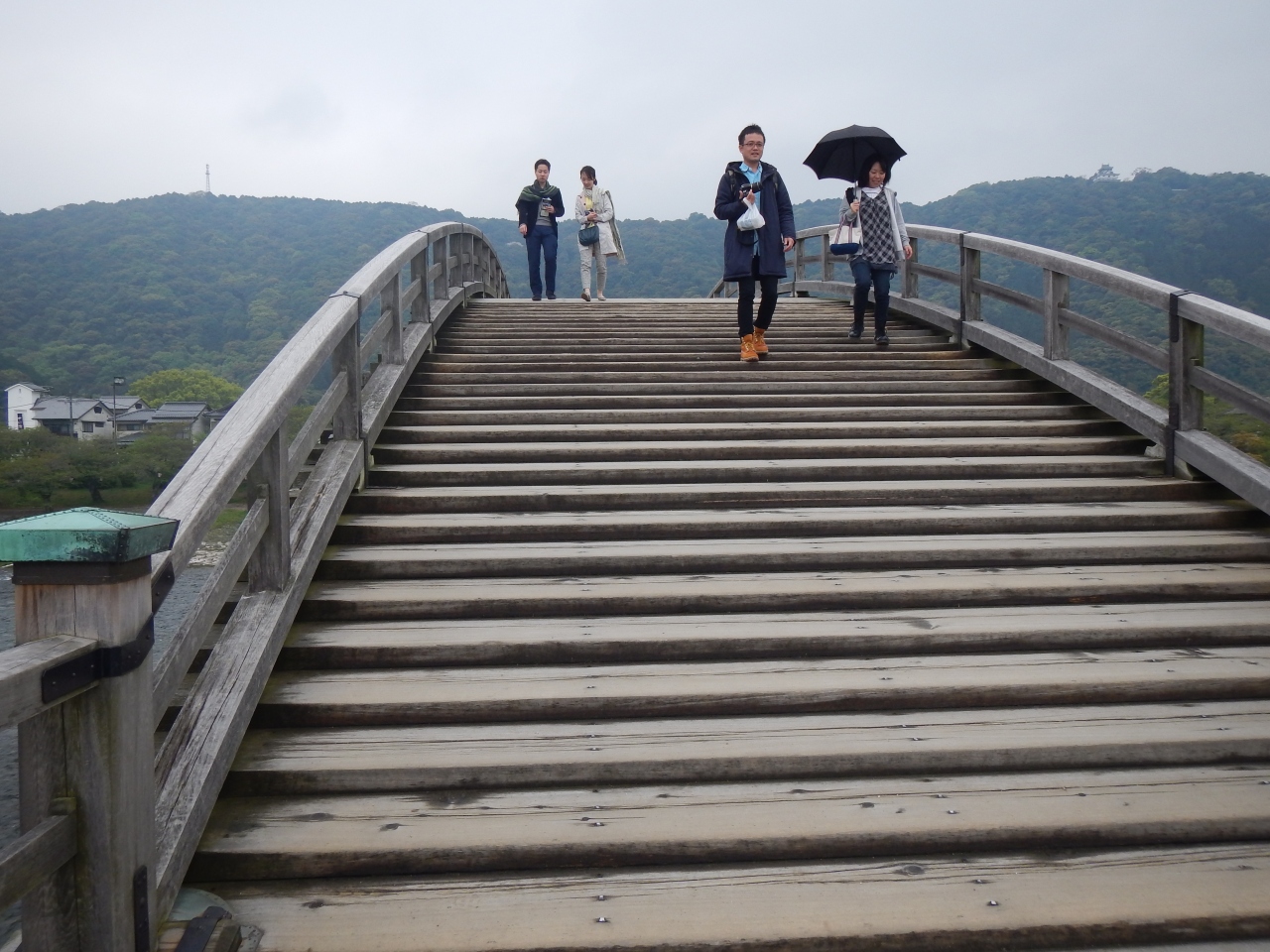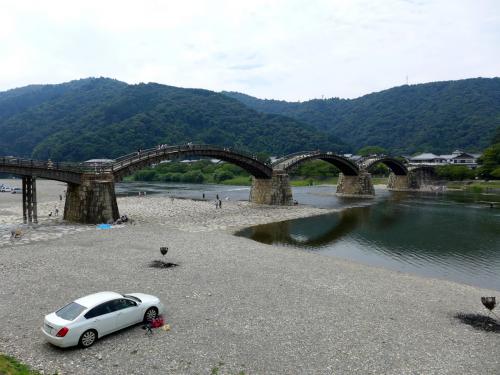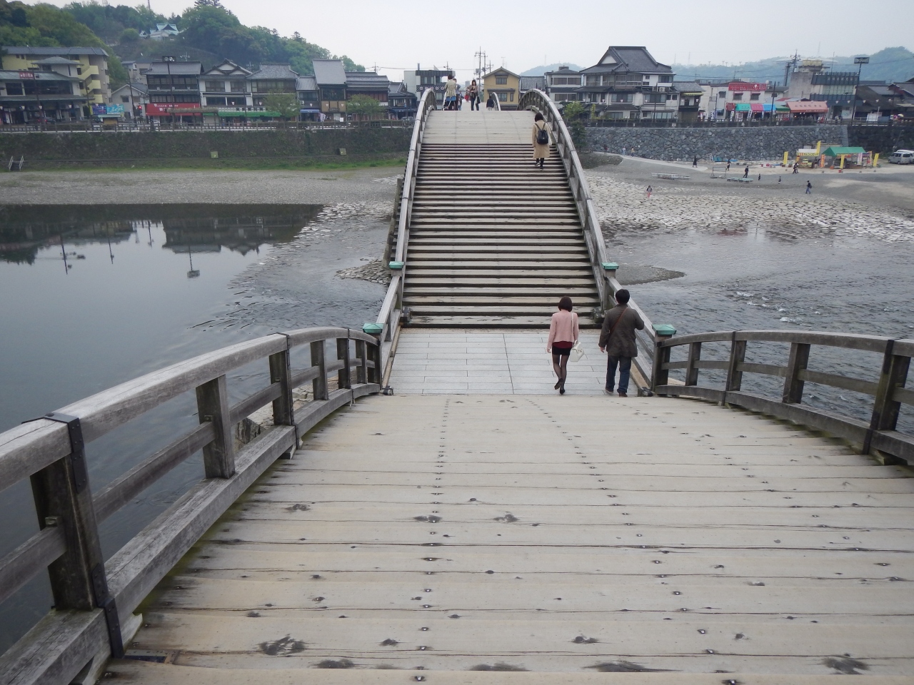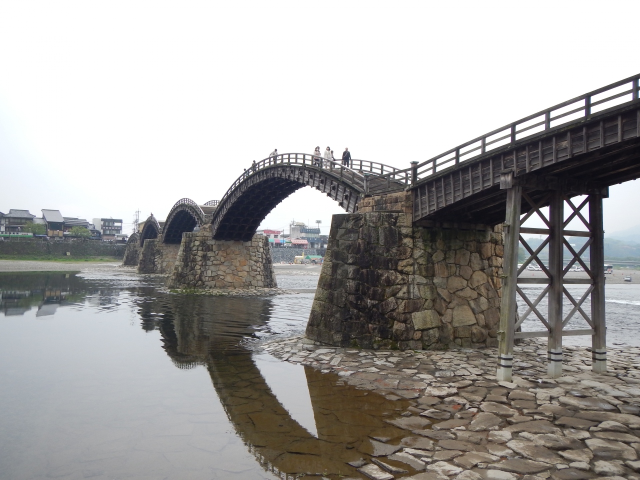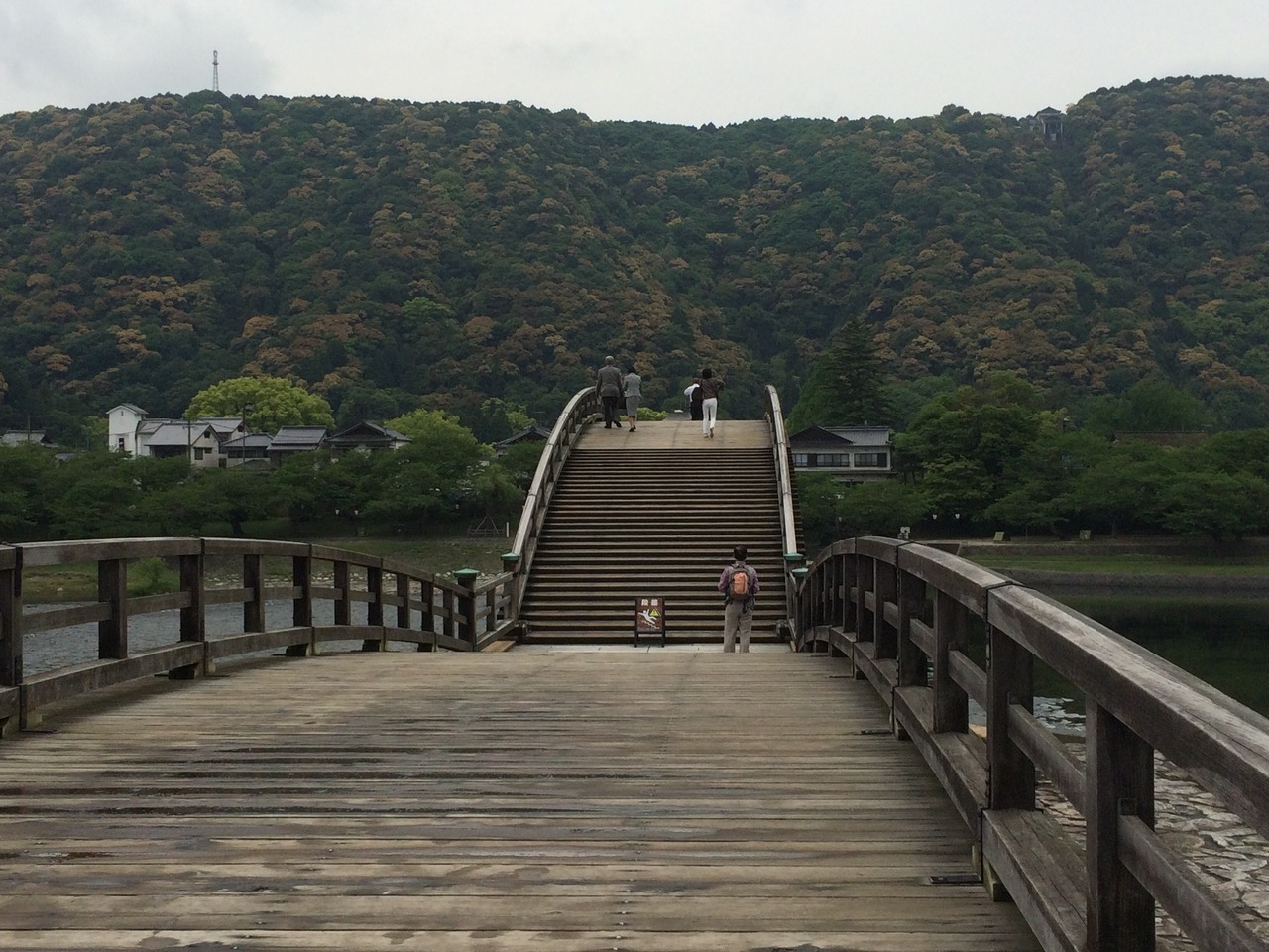 JR岩国駅前から出ているいわくにバスで錦帯橋へ。15分ほどで錦帯橋近くのバス停に到着、川の岸辺にある遊歩道から斜め前方に見...  続きを読むえる錦帯橋は圧巻。実際に橋を歩いてみると、斜めから見えた錦帯橋の景色とは全く違って見える。五連のアーチの角度がきつい部分は、滑り止めのため緩やかな階段状になっている。橋の上から見える錦川の表情も素晴らしい。シラサギが川面の小魚を待ち構えている。橋上からは、ロープウェイや岩国城が見える景色も素晴らしい。   閉じる