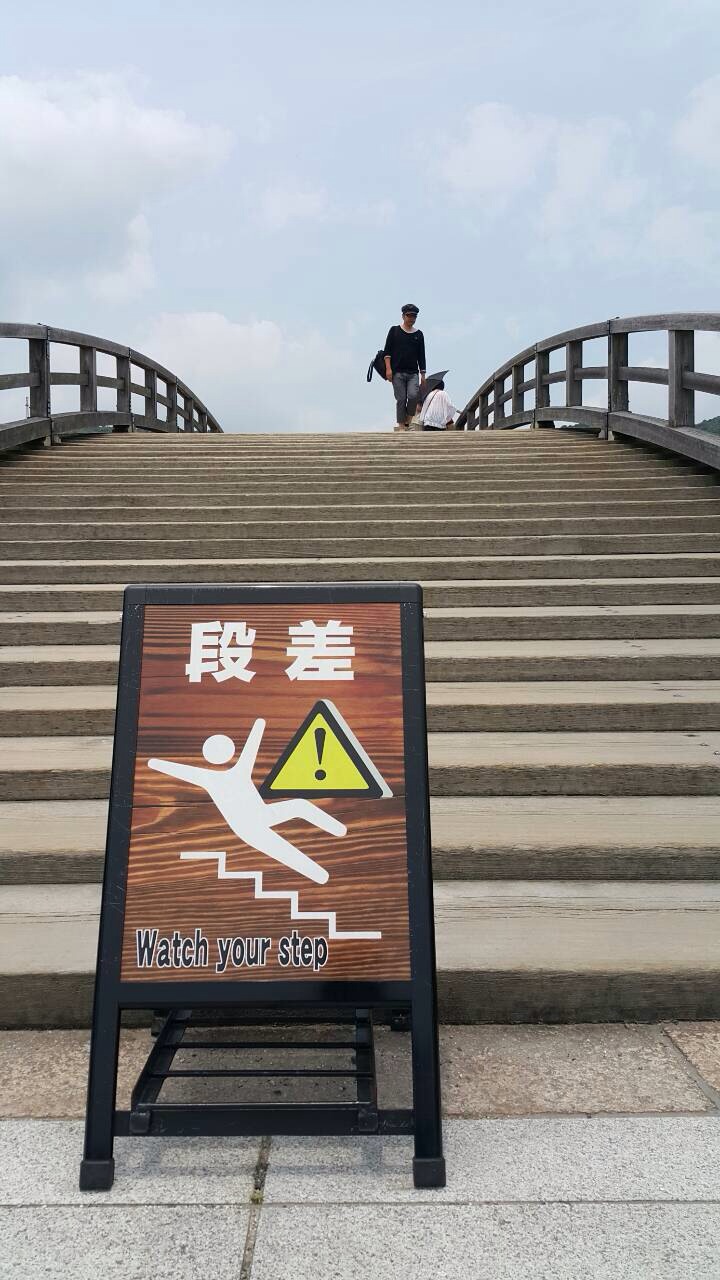 渡ってみると、アーチ部分が階段の様になっていて、上がり下りを幾度も強いられる。当然ながら、車椅子等では渡れない。