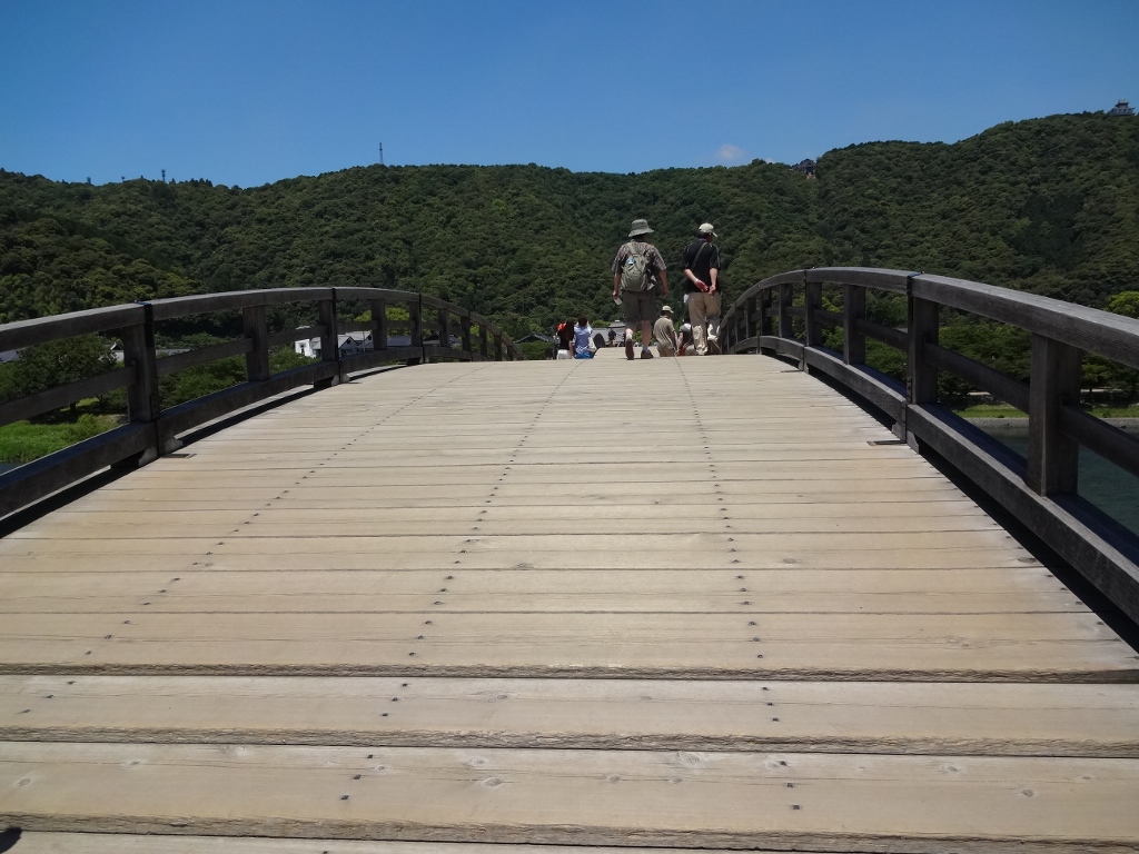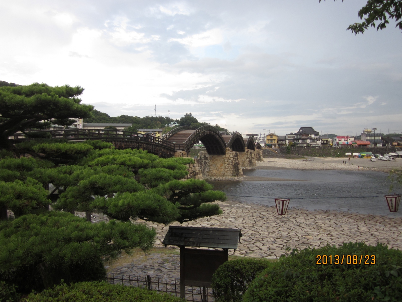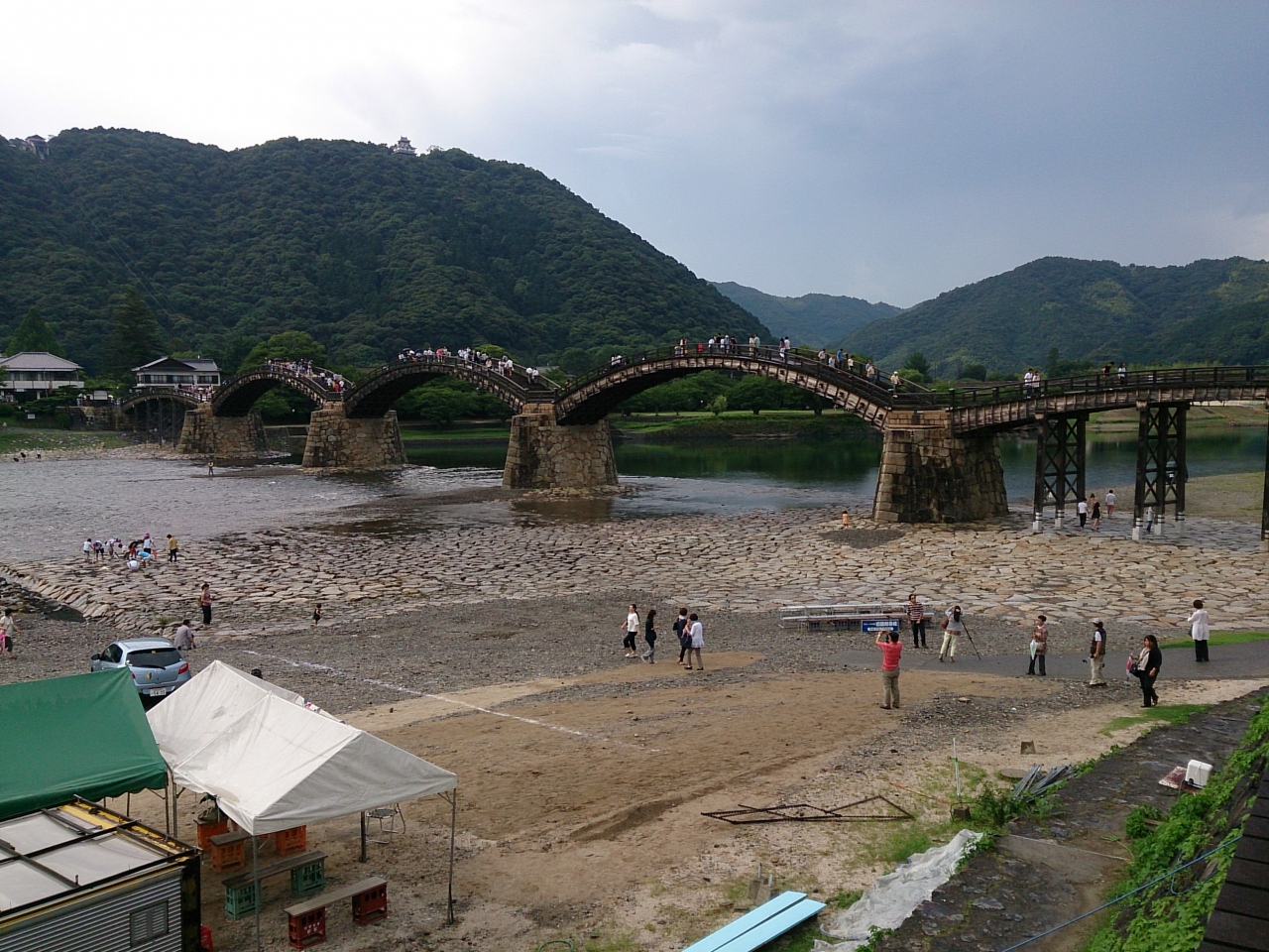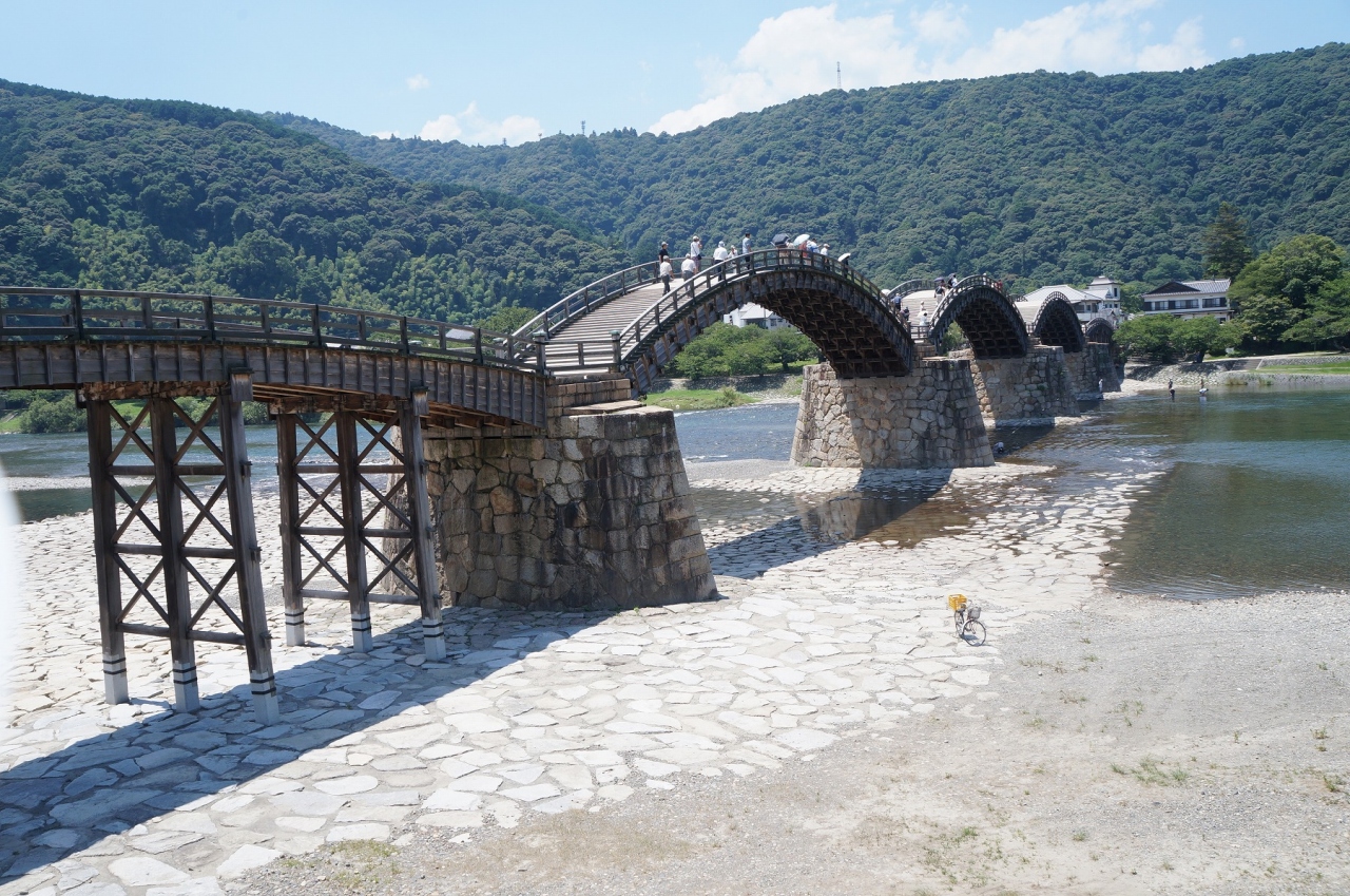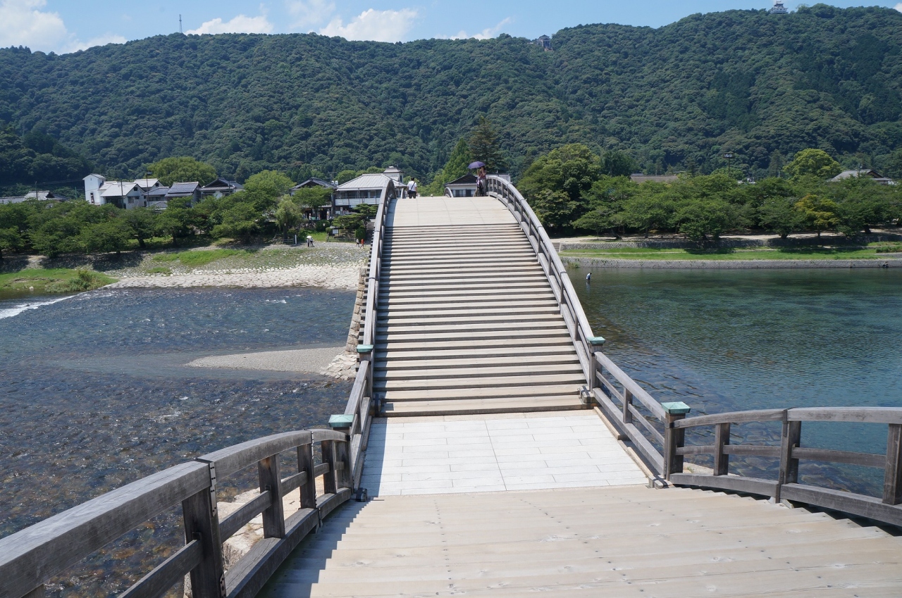 JR岩国駅前から出ているいわくにバスで錦帯橋へ。15分ほどで錦帯橋近くのバス停に到着、川の岸辺にある遊歩道から斜め前方に見...  続きを読むえる錦帯橋は圧巻。実際に橋を歩いてみると、斜めから見えた錦帯橋の景色とは全く違って見える。五連のアーチの角度がきつい部分は、滑り止めのため緩やかな階段状になっている。橋の上から見える錦川の表情も素晴らしい。シラサギが川面の小魚を待ち構えている。橋上からは、ロープウェイや岩国城が見える景色も素晴らしい。   閉じる