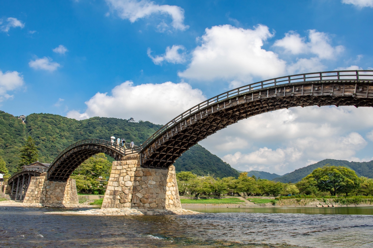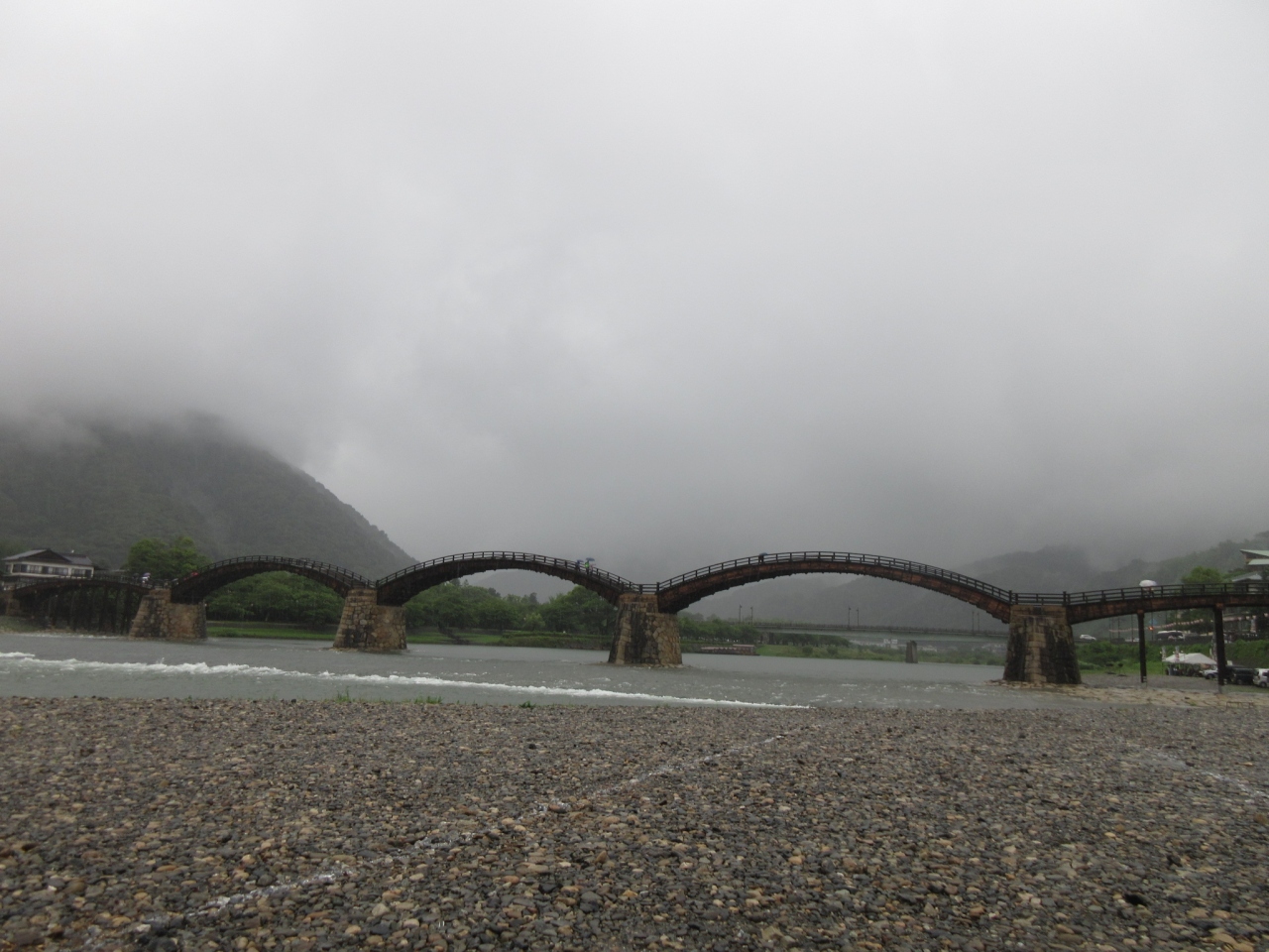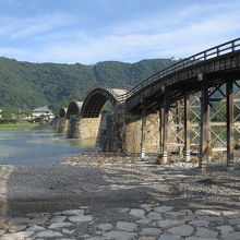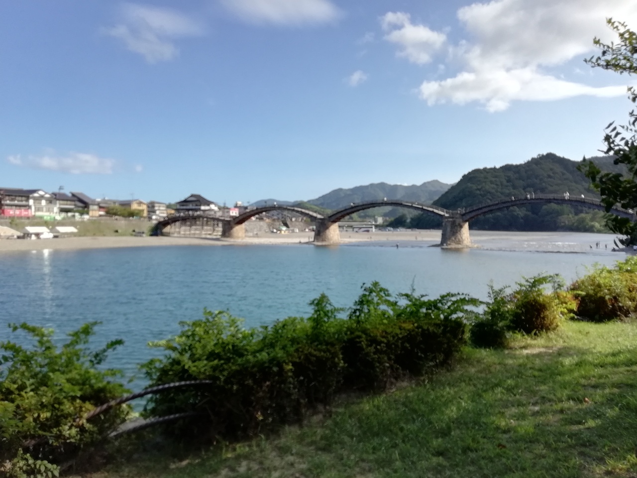 日本三大橋の一つになります。この独特のフォルムの橋は本当に美しくてずっと見ていても飽きません。当時の技術でこれだけの橋を作...  続きを読むったのは本当にすごいです。この夏の集中豪雨で水位がすごいところまできていたみたいですが、壊されなくて良かったです。  閉じる