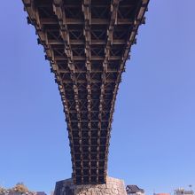 現在の橋は平成15年に架け替えたものですが橋の裏側から見える幾何学模様の木組は、一連のアーチでなんと60トンもの荷重を受けても持ちこたえられる構造になっているそうです。
