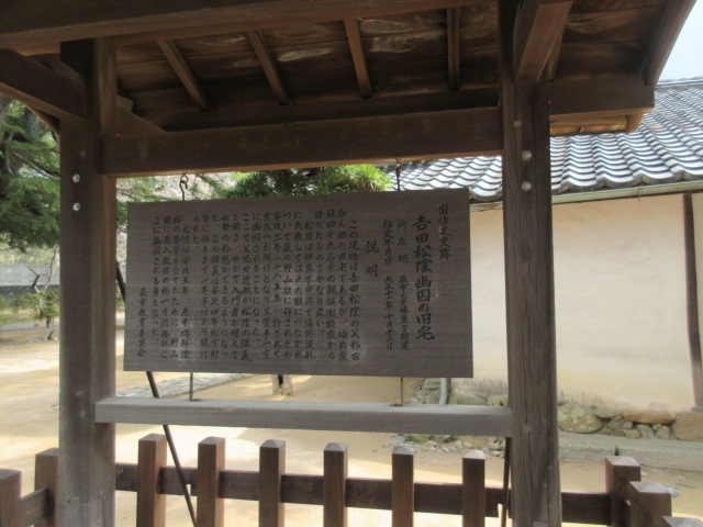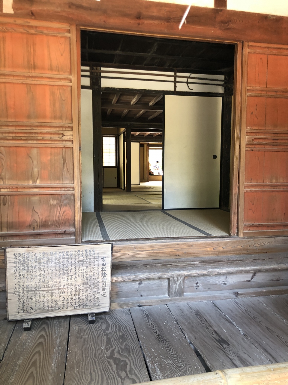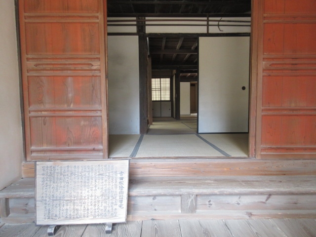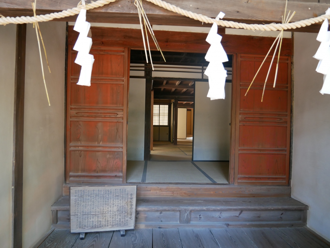 この家は移築したものではなく、もともとここに建っていたものとのことです。三畳半プラス1畳分の神棚の幽囚室を見ることが出来ま... 続きを読むした。大きな家だけにその狭さが一層印象的です。この家は、実父・杉常道(通称百合之助)(知行26石)が、友人の瀬能吉次郎(知行49石)から借りていた家です。知行49石でも、広い敷地にこんな大きな家を持て、しかも、住まいとは別ですから、かなりの驚きです。(なお、明治になってから、杉家が購入しています)ちなみに、養子に入った吉田家は知行57石です。余談的ですが、1石は概ね10万円との換算指数があります。長州藩の場合、実収入は4ツ成といいますから、実質はその40%です。