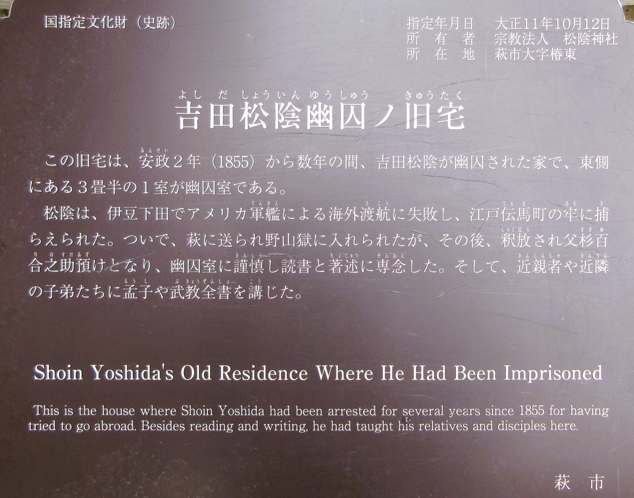 吉田松陰幽囚ノ旧宅(山口県萩):安政の大獄で幽囚された吉田松陰、萩の「明治日本の産業革命遺産」世界遺産の一つ