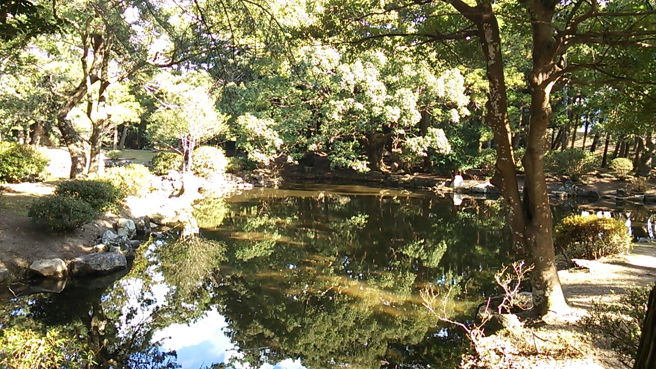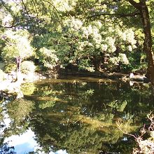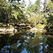 指月公園は内堀に囲まれた本丸跡地とその裏手の指月山です。