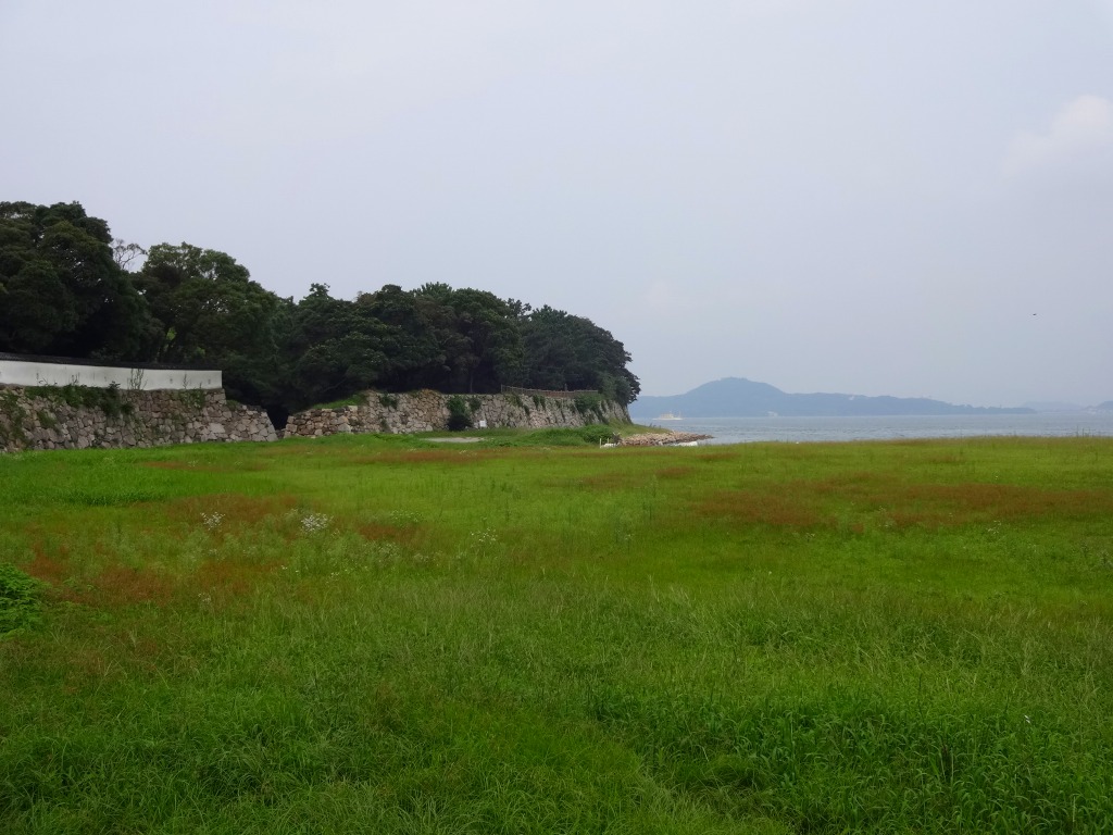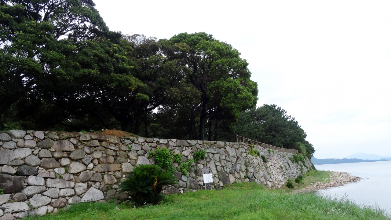 潮入り門跡が今も海側に残っていて、潮入り門跡の隣にある城壁を二の丸土塀またの名を銃眼土塀といいます。