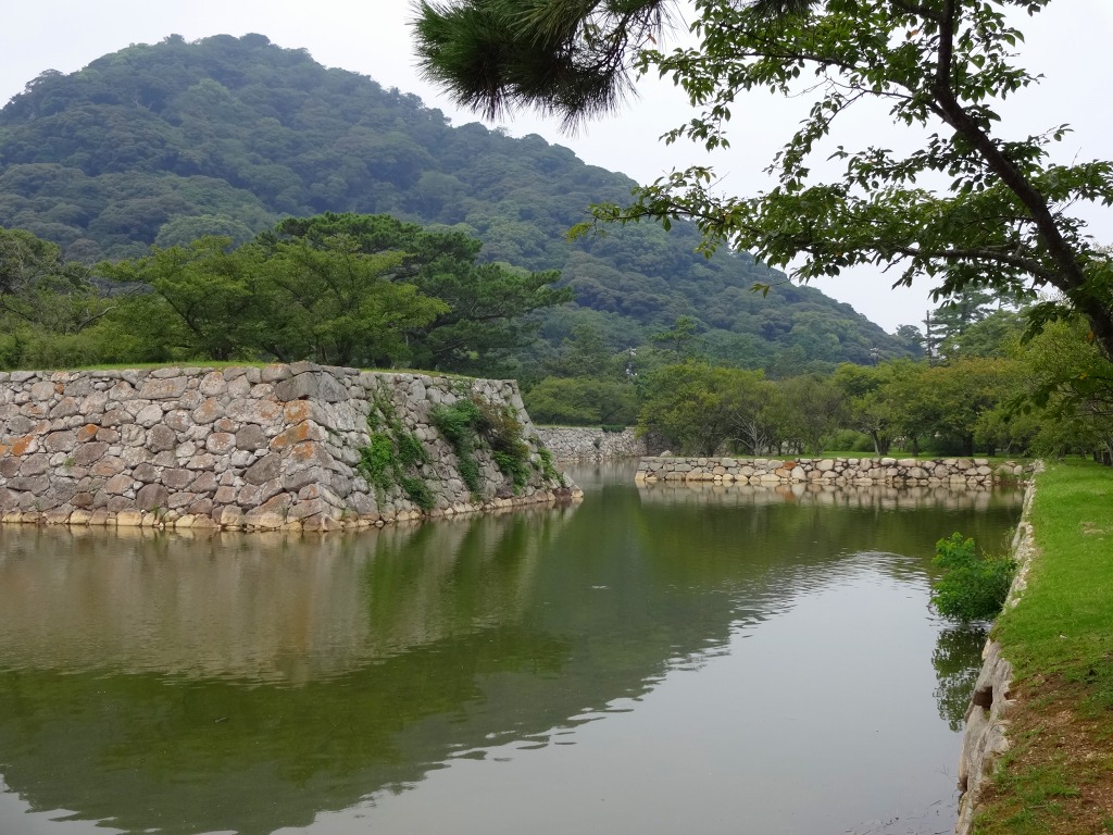 天守閣等の建物はすべて残っていませんが、石垣や堀が残っています。また、園内には梨羽家茶室や家老福原家書院、志都岐山神社等がありましたが、全般的に木がうっそうとしげっており、天気が悪い日は、やや怖いです。