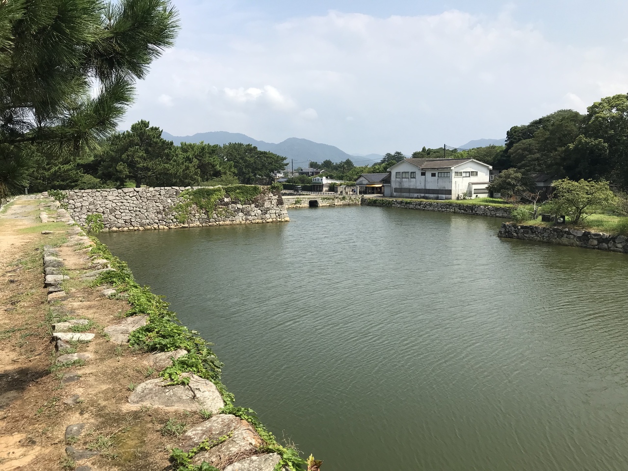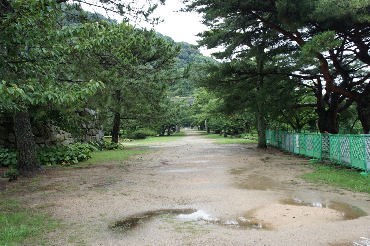 天守閣等の建物はすべて残っていませんが、石垣や堀が残っています。また、梨羽家茶室や家老福原家書院、志都岐山神社等がありましたが、全般的に木がうっそうとしげっており、天気が悪い日は、やや怖いです。
