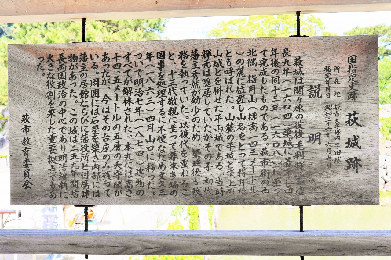 萩城跡は指月公園として整備、城跡の構造をよく残していることが特徴で旧跡が多くあります。 「萩城跡指月公園」は、敷地面積が... 続きを読む約20万平方メートルもある広大な公園です。 背後に見える「指月山」が美しい。 公園内では、お堀の一部や立派な石垣を見ることができます。 萩城の天守は桃山時代初期の様式で、白亜5層の壮麗なものでした、現在は礎石と台座のみを残しています。 萩城は慶長9年(1604)に毛利輝元が指月山麓に築城、別名指月城とも呼ばれます。 城跡は国の史跡に指定されています。 城下町と一緒に世界遺産「明治日本の産業革命遺産」の構成遺産に登録されました。 閉じる