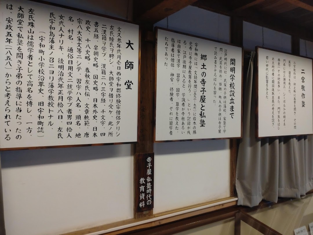 開明学校の前身は1869年(明治2年)に左氏珠山の門下生や町民の有志により建てられた私塾申義堂であった。1872年(明治5... 続きを読む年)、申義堂を校舎として開明学校が開校。1882年(明治15年)に現存する校舎が竣工した。その後、校名や用途をたびたび変更し、1976年からは教育資料館として、戦前の教科書と学校経営資料など約6000点を展示している。