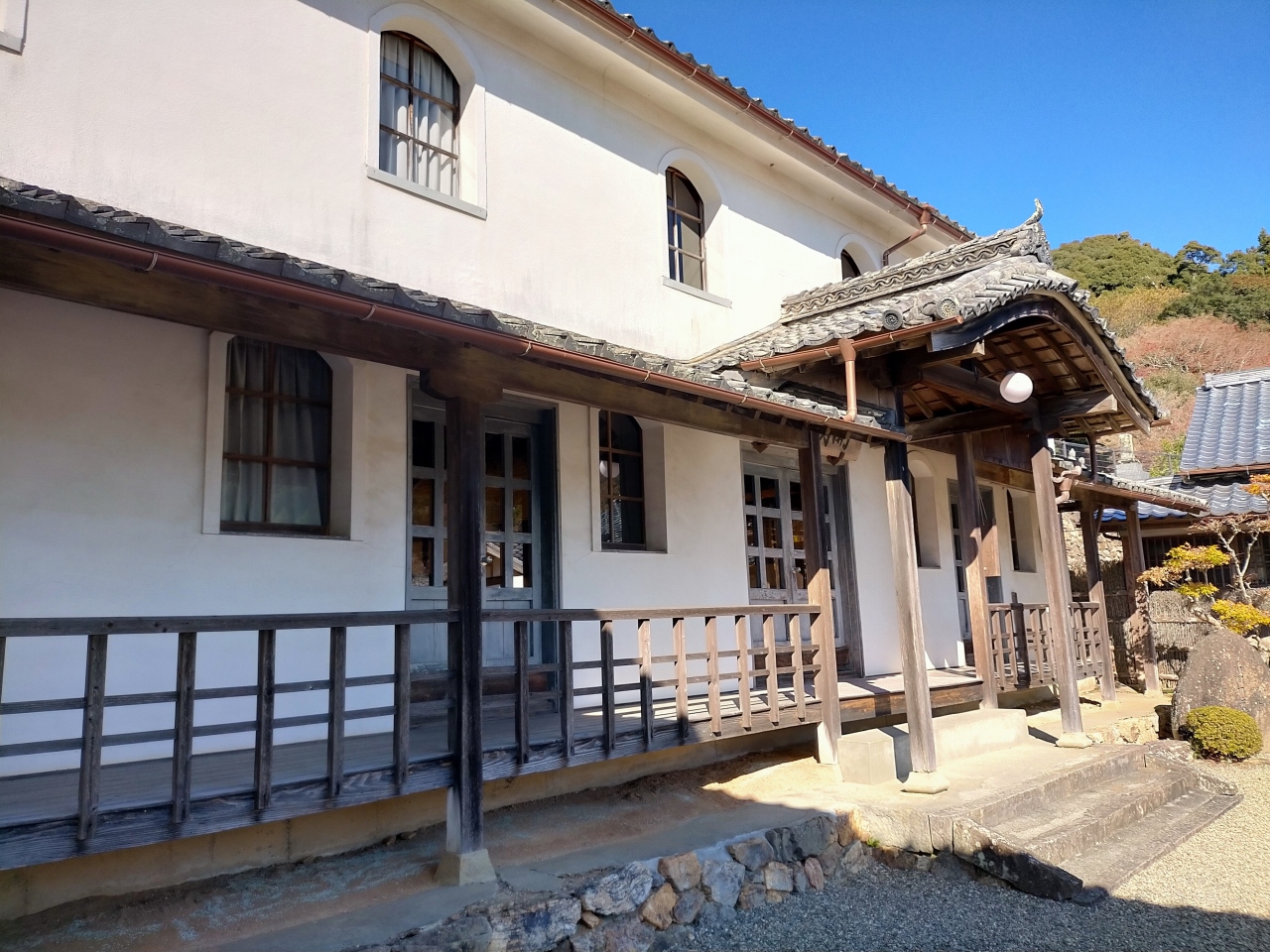 1882年(明治15)年に卯之町の町民の寄付で建てられた四国最古の小学校校舎で、国の重要文化財に指定されています。 明治... 続きを読むの建物としては、白壁とアーチ型の窓がハイカラな洋風建築で、文明開花を意識した教育への情熱の表れだと想像できます。 事前に予約すれば、袴姿の先生に明治の授業を受ける体験もできるそうですよ。 閉じる