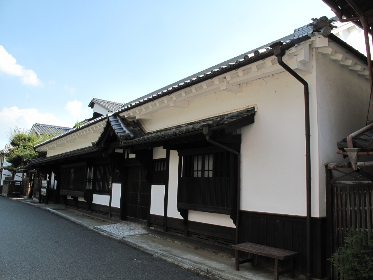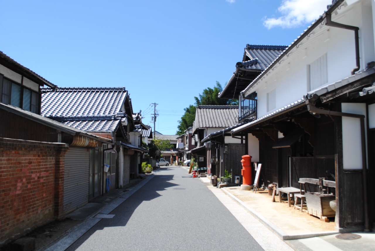 歴史の街並の通りに入ると、白壁と黒い木材が組み合わさった古民家が立ち並んでいます。通りの右手の丘の上には、開明学校があります。明治15年(1882年)、建築された小学校で、伝統的な木造建築でありながら、洋風のアーチ型の窓が配された擬洋風のモダンな建物で、国の重要文化財にも指定されています。通りに戻ると、次々に重要文化財の建物が現れます。江戸中期から昭和初期の商家が立ち並ぶ、壮観な眺めの通りです。美しく統一された歴史の街並は、訪れる人を優しく包んでくれます。