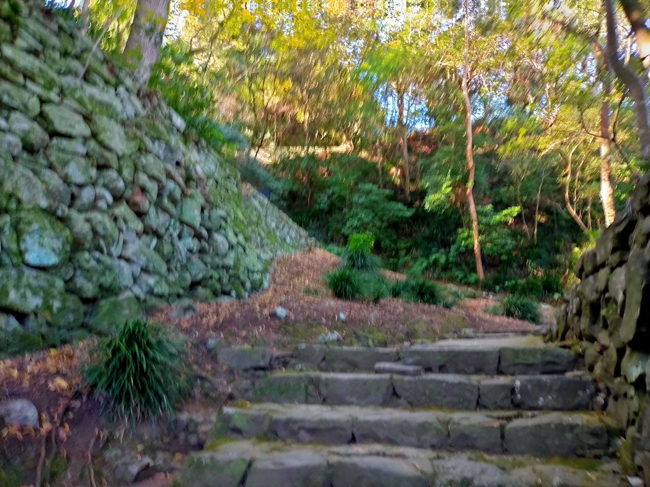 石段の先には井戸丸があって井戸が見られるが今回は道なりに行って長門丸に行く。