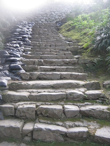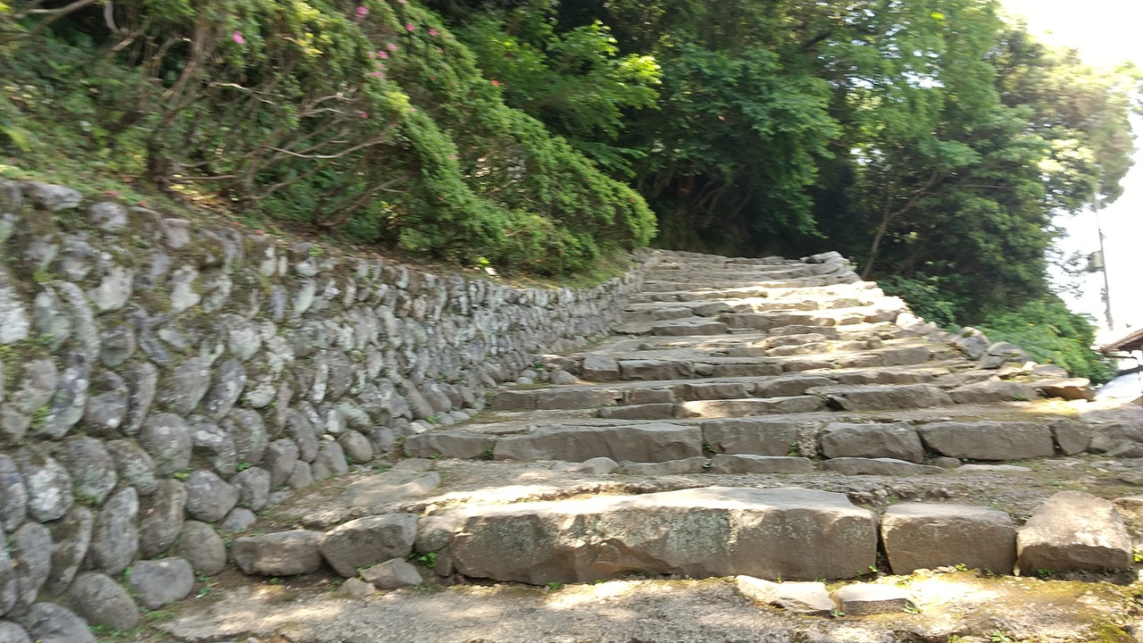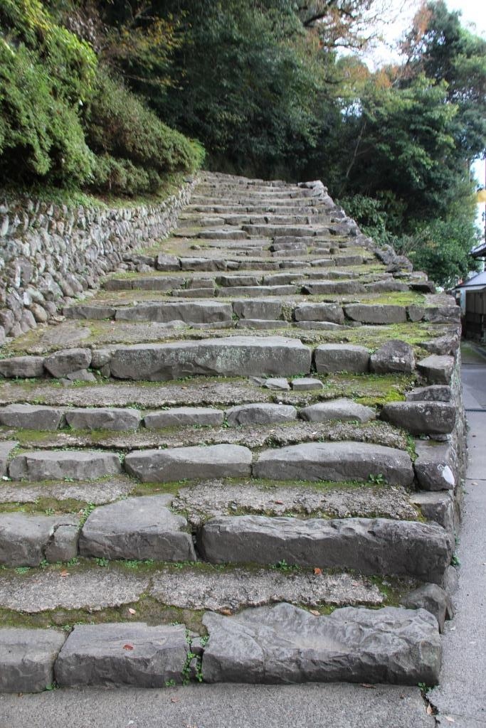 山道を登ると左に行く石段がある。